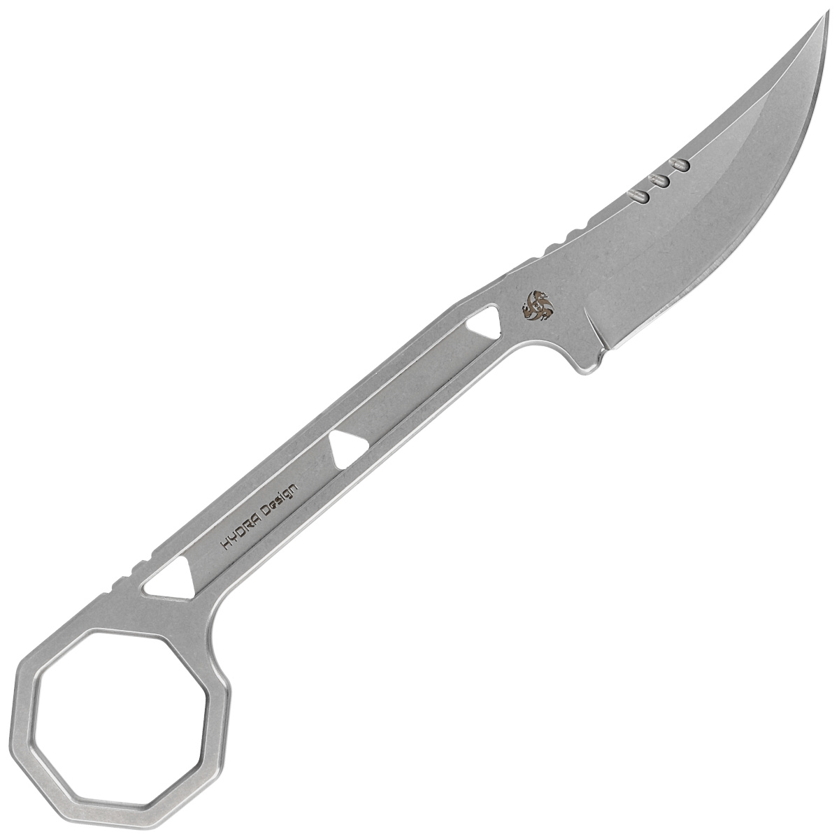 • 12.7 Trailing Steel Handle, Bead Blasted, fixed blade neck type knife. Designed by Allesandra De Santis of HYDRA Design. Monolithic 14C28N stainless steel construction, kydex sheath equipped with a clip for pocket carry. A hit!