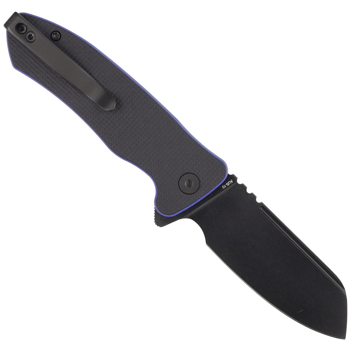 Creon Black/Blue G10, Blackwashed, compact EDC folder, combining robustness with practicality. Blade made of Japanese stainless steel AUS-10, known for its excellent corrosion resistance and ease of sharpening. The handle is made of durable G10 composite, ensuring a firm grip even in difficult conditions. The intuitive button lock mechanism allows for safe and easy one-handed operation. Thanks to its strong construction and low weight, Creon is ideal for everyday use, offering reliability and functionality in any situation.