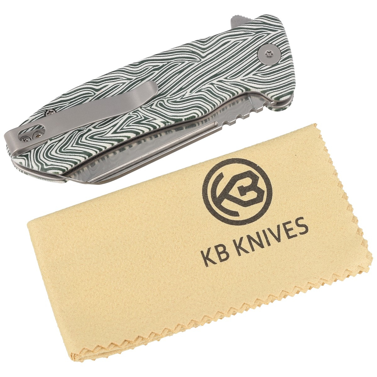 Kubey Creon Knife White/Green G10, Damascus (KU336A)