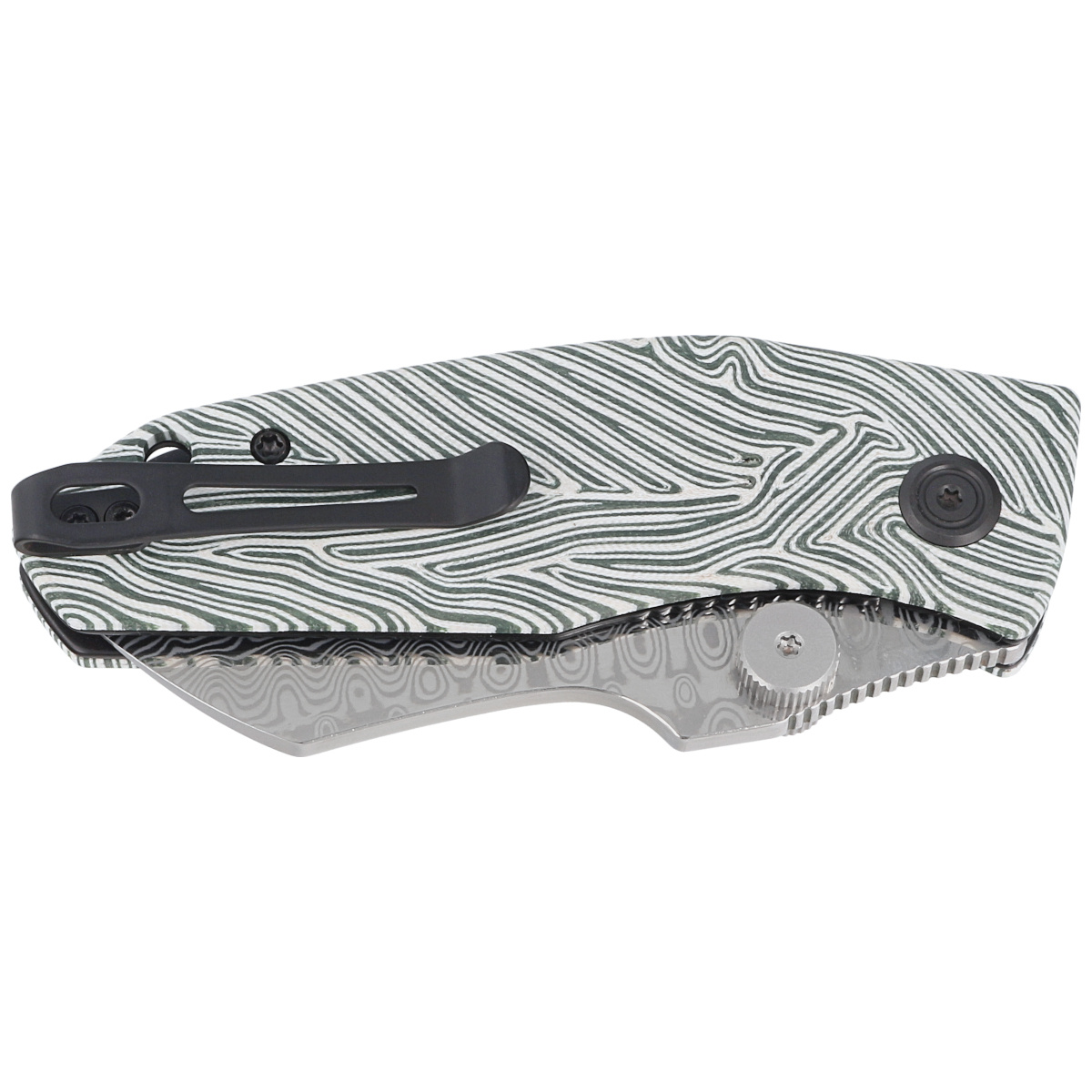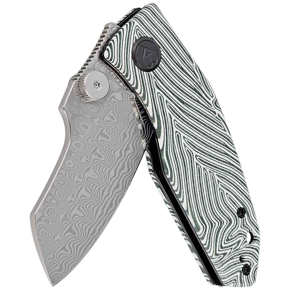 Monsterdog White/Green G10, Damascus, compact EDC folder, small in size, yet built like a tank! Stainless steel 14C28N blade, rugged G10 plastic on the handle, a tool that you can always carry with you and that will not fail! Designed by Dmitry Osarenko, a knifemaker whose custom folders are sought after worldwide by collectors. Bestseller!