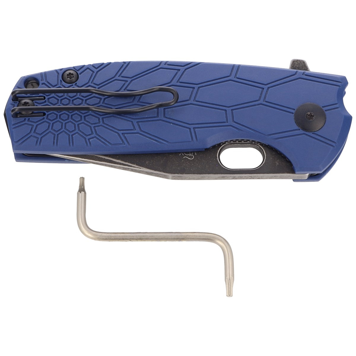 Core Tanto Blue FRN, Black Top Shield one of the best knives for everyday use with two ways to open the blade, with a flipper or oval opening, now with a modified tanto head. A folder you can always rely on thanks to its sturdy, durable blade equipped with a strong tip for penetration and a sharp main cut. Designed by esteemed Danish knifemaker Jesper Voxnaes owner of VoxDesign. The perfect E.D.C. folder.