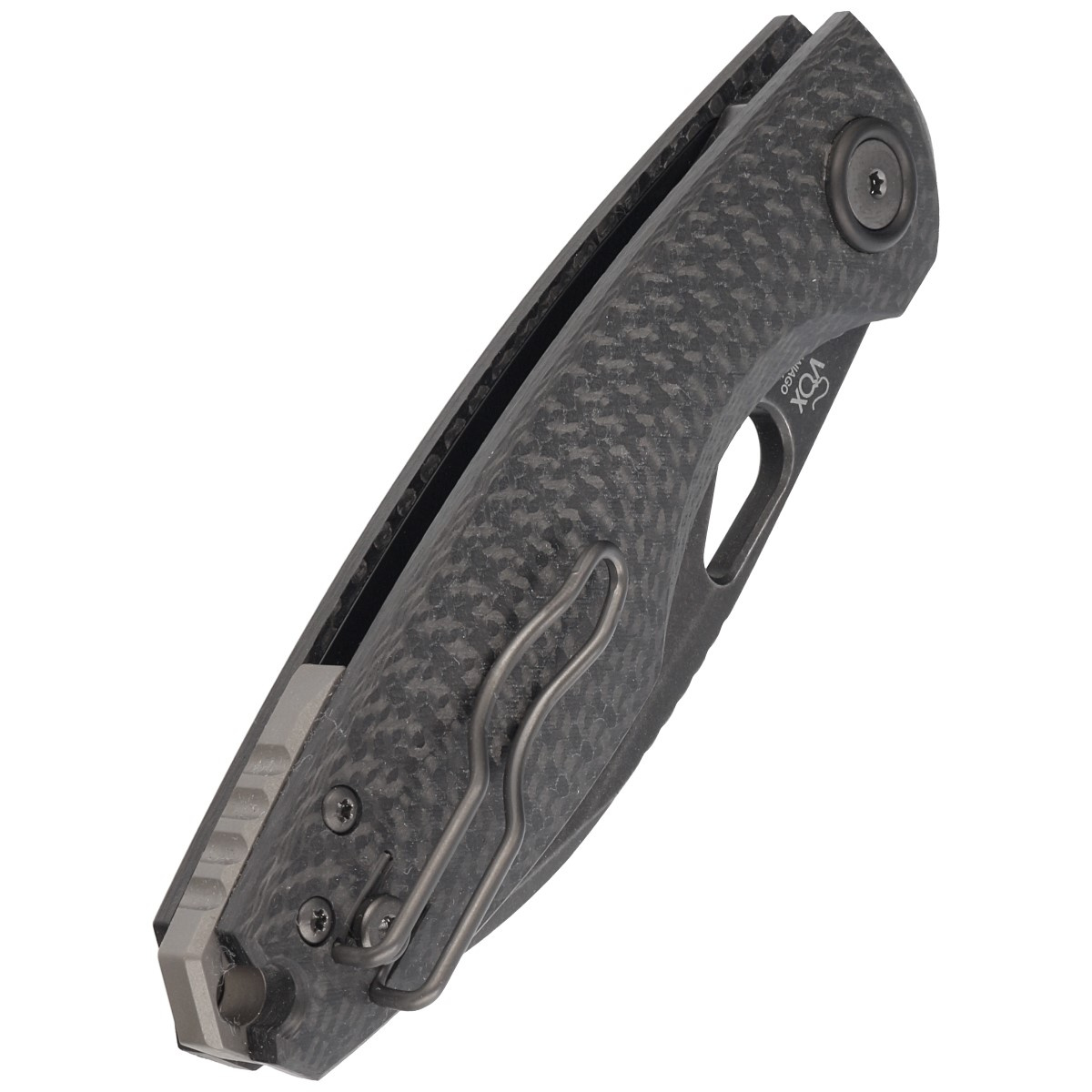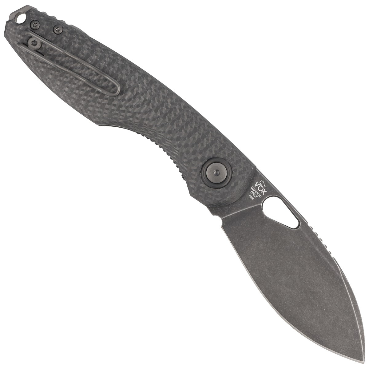 Chilin Black Carbon Fiber, Black Stone Washed PVD undersized, elegant with exceptional ergonomics E.D.C. folder, whose shape is derived from traditional Chinese Shilin Cutters. Designed in accordance with the modern, minimalist style of Danish knifemaker Jesper Voxnæs. Lightweight, decorated with refined details, a unique combination of style, functionality and reference to tradition.