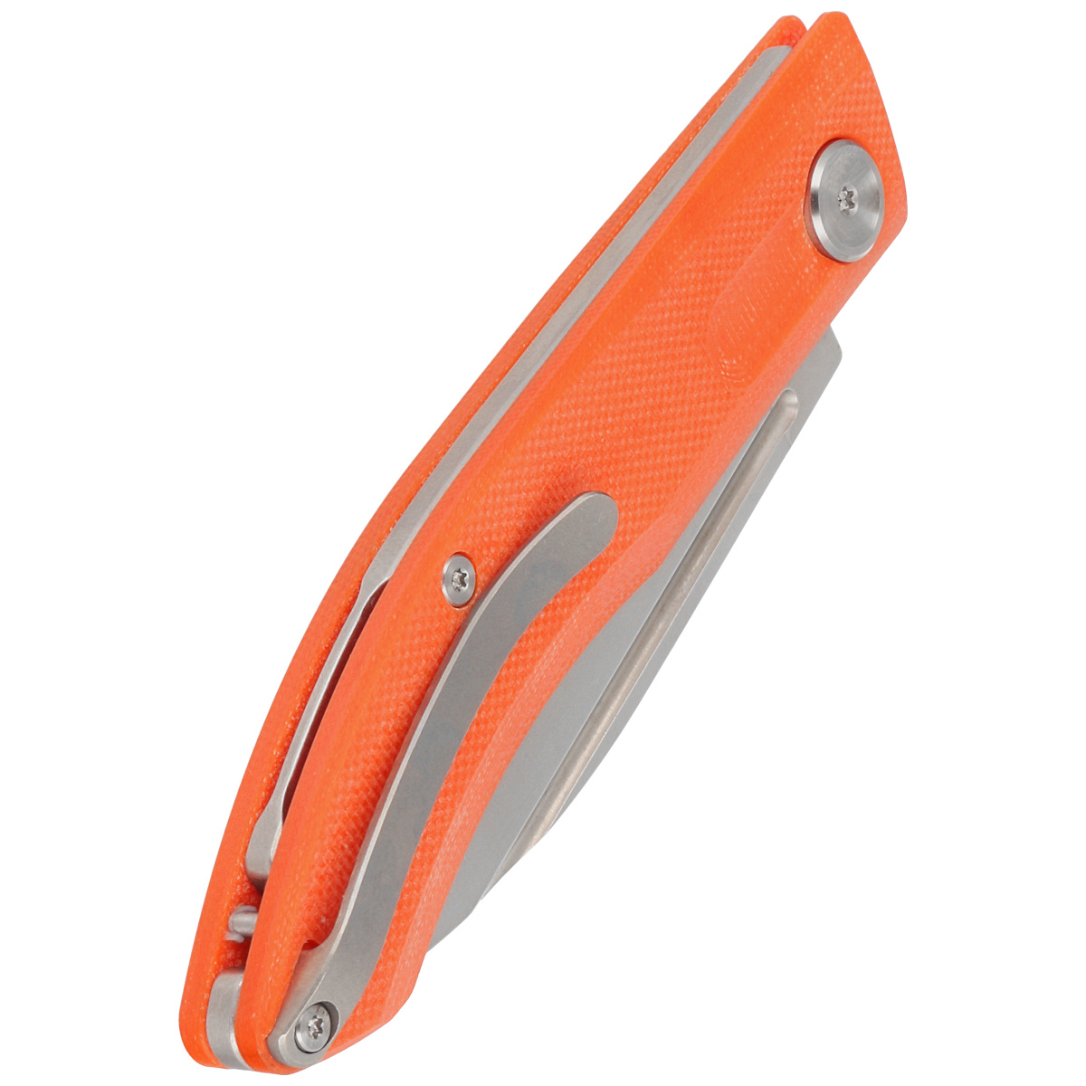 Stella Orange G10, Stonewash an even lighter version of the Stella family folding knife, the result of a collaboration between Polish designer Jakub Wieczorkiewicz (Poltergeist Works) and RealSteel Knives. Handle made of G10, VG-10 stainless steel. light and compact, modern gentlemans folder!