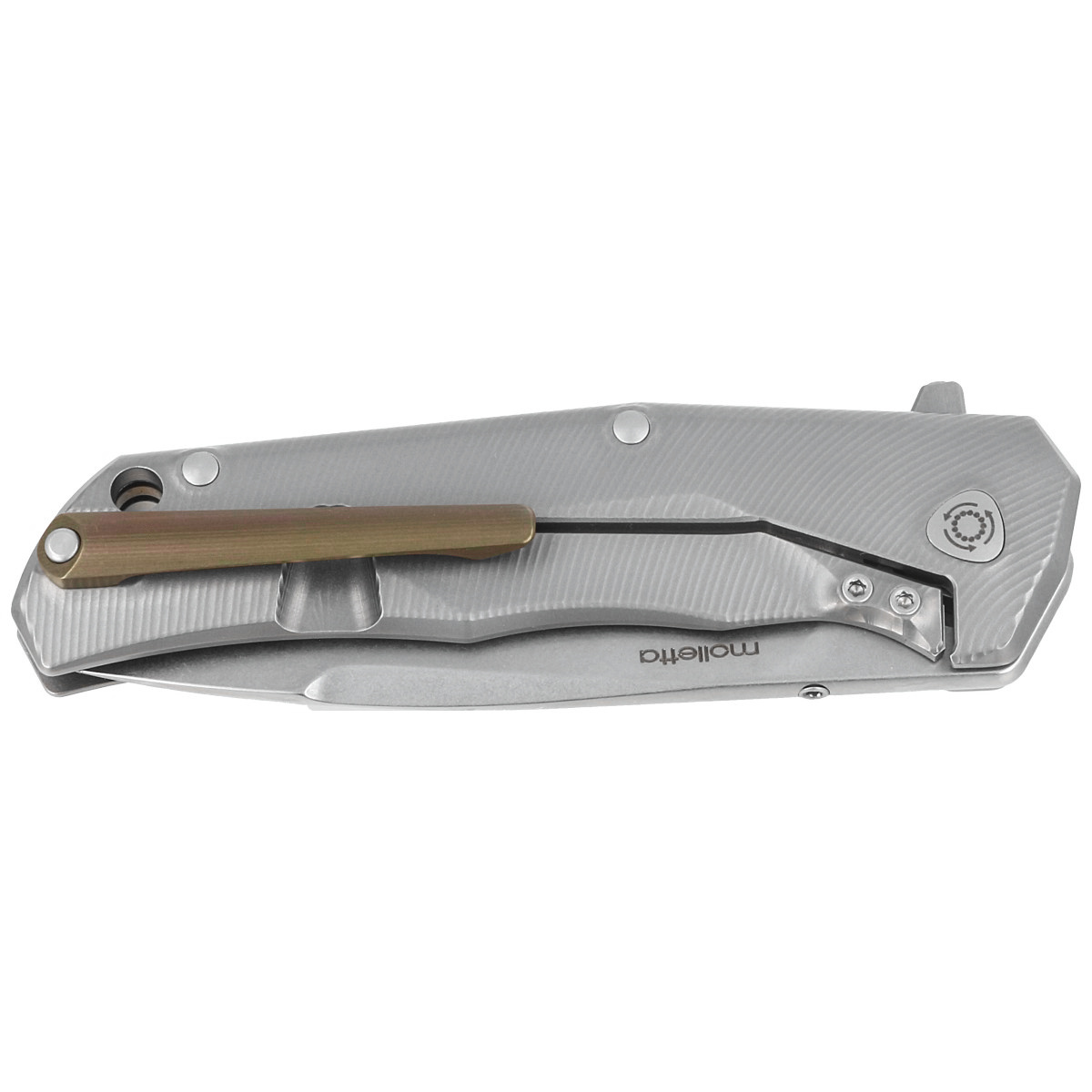 - TRE Grey / Bronze Titanium, Stone Washed knife equipped with Three Rapid Exchange patented system with 3 different ways to open the Blade. Useful in countries with a ban on one-handed opening knives in public places.