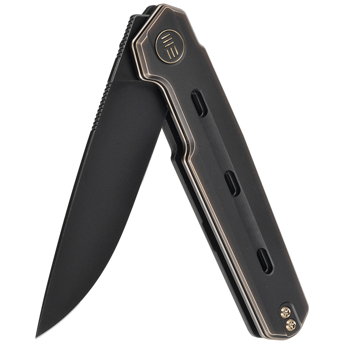 Navo Bronze / Black Titanium, Black Stonewashed, an elegant EDC folding knife designed by Polish knifemaker, Ostap Hel. Easy to carry, excellent 20CV blade steel, Handle made of pleasant to the touch Carbon, incredible workmanship WE Knife! Perfection!