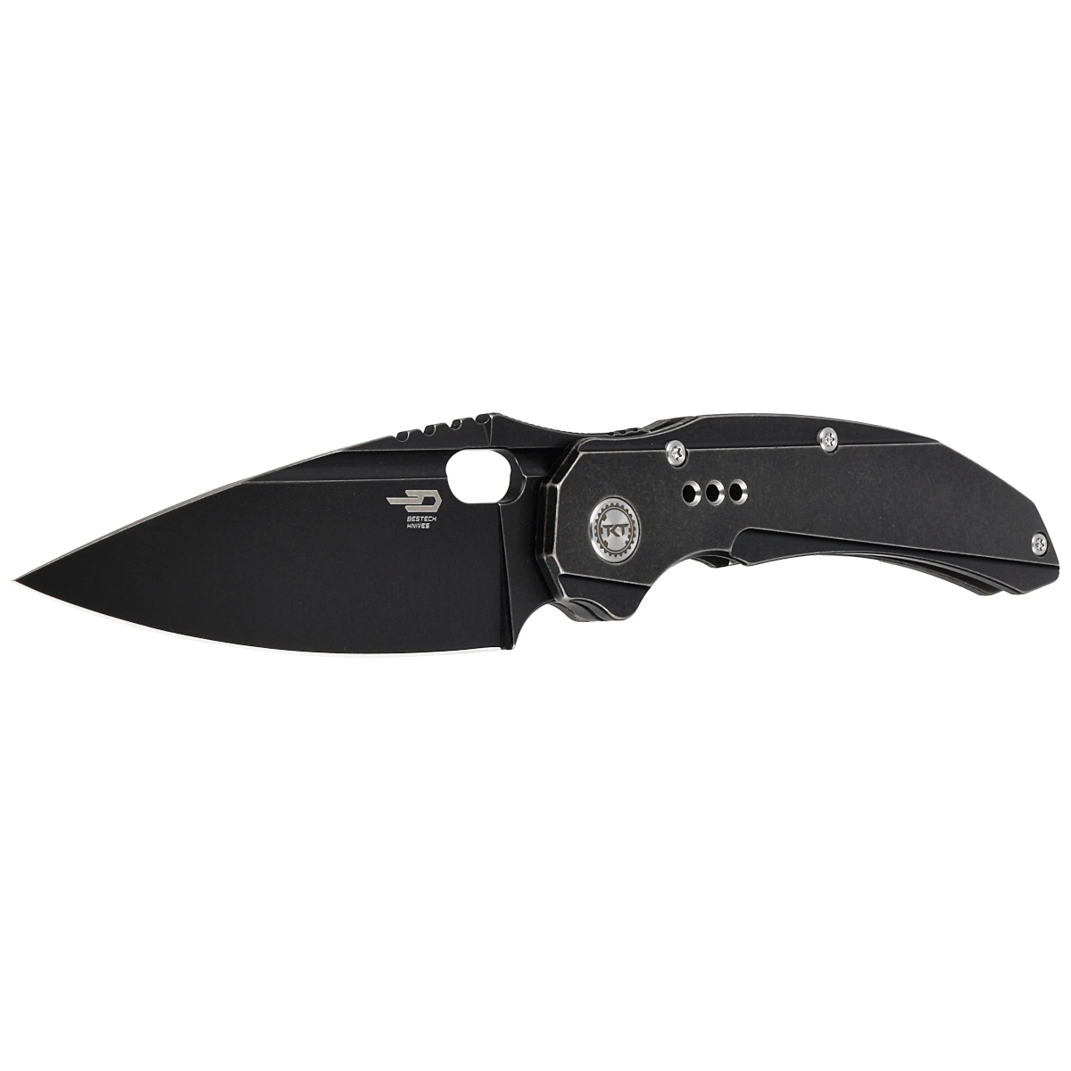 Exploit Black Stonewashed Titanium, Black Stonewashed, one of Bestech's flagship knives designed by Todd Knife and Tool. An extremely sturdy, compact folder that will perform well in both EDC applications and heavier field work!