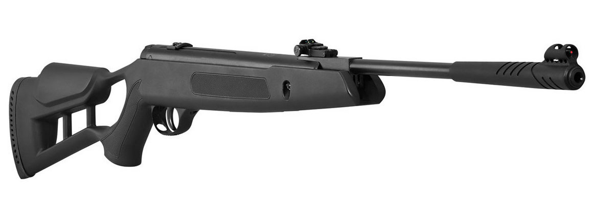 - Edge Vortex air rifle with a gas piston and thumbhole stock. Precision steel threaded barrel, automatic safety, fiber optic sights. For those looking for a carbine with a proven design at an affordable price.