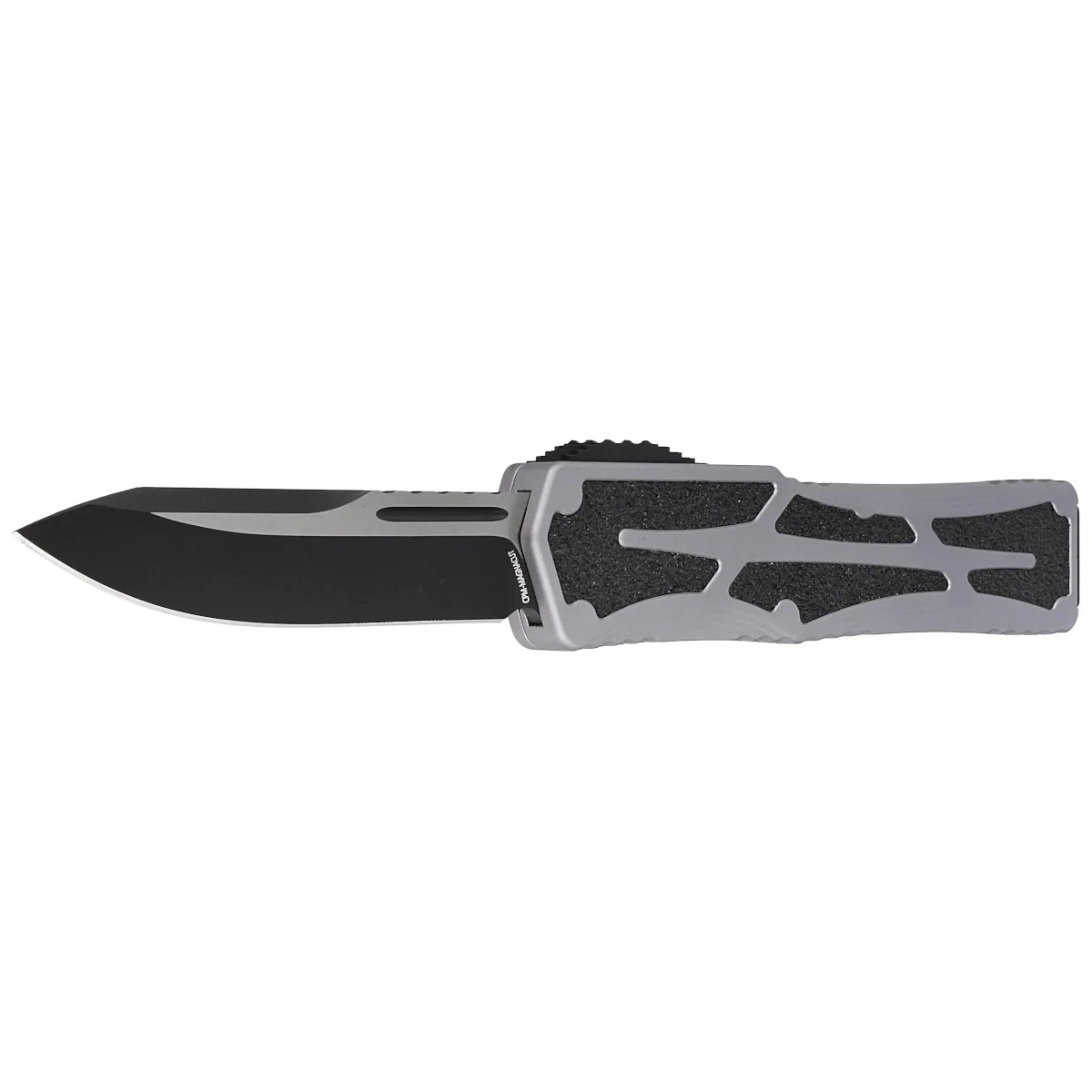 Colossus Single Edge Gray Aluminum, Cerakote Two-Tone Black, Black HW/Clip has a secure place in the Heretic Knives OTF line of automatic knives. The mechanism, which operates with great strength and power, uses a patent-pending slide action. Ball bearings used reduce friction for fast, smooth blade locking. Grip enhancing inserts on both sides of the Handle give remarkable style as well as functionality. The double-sided clip makes this an ideal knife for right- or left-handed users.