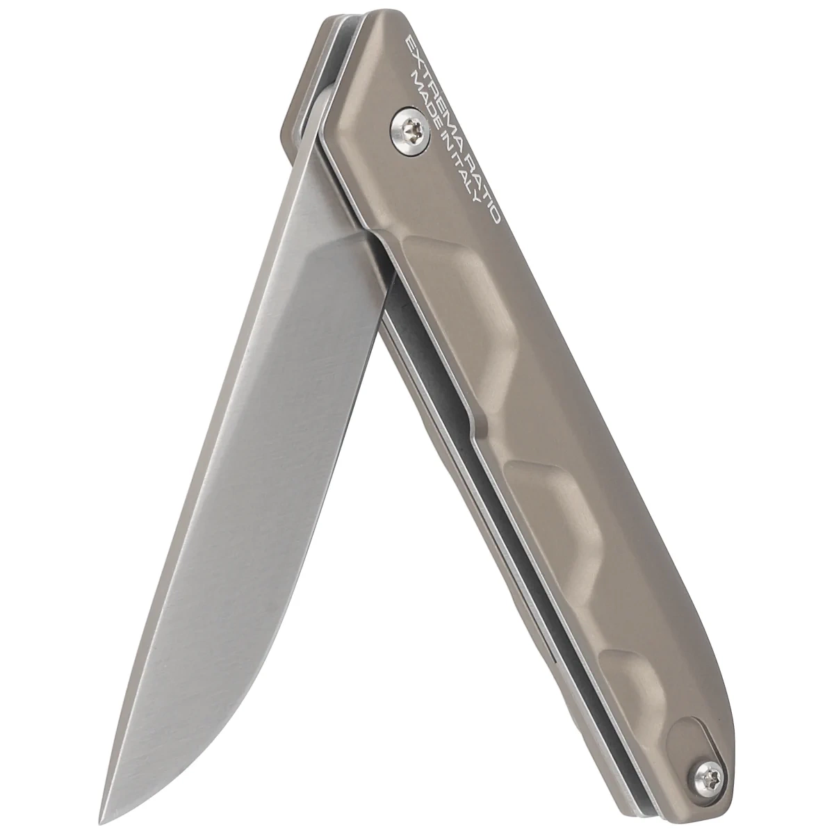 Ferrum E Tactical Mud Aluminium, Satin (EDC) strongly built folding knife from Extrema Ratio. Proven solutions from the ER, profiled aluminium handle, proven N690 steel for the blade, Ball bearings for a smooth opening! Perfect for everyday carry, a reliable companion for everyday life.