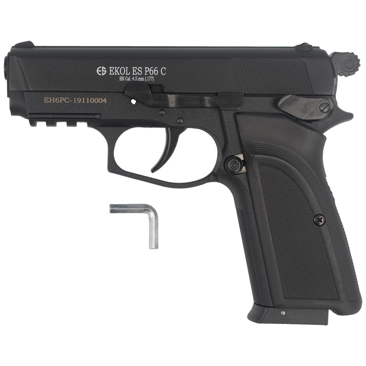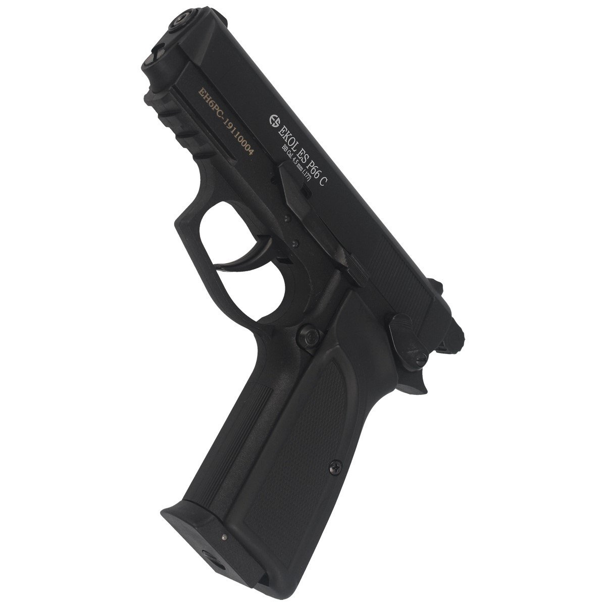 - Ekol ES P66C Black compact and ultra-lightweight semi-automatic air pistol, structurally based on a blank pistol. With such strong roots, this powerful airgun reaching a velocity of 135 m/s, is well-suited for dynamic sport shooting and tactical training.