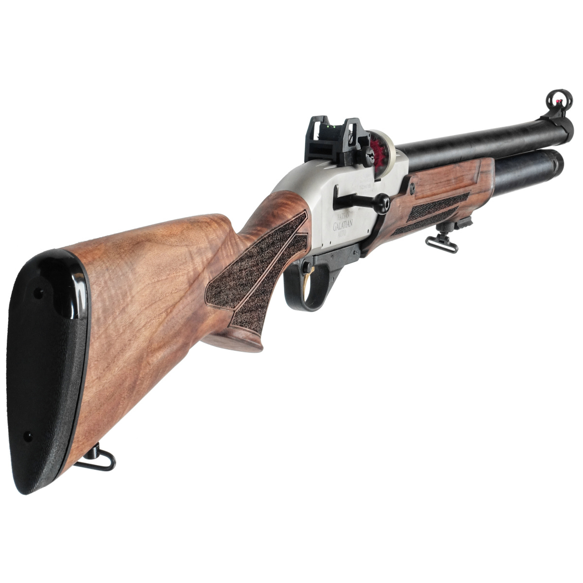 - GALATIAN 5 AUTO, półautomatyczna wiatrówka PCP firmy Hatsan z systemem SemiAutoAction zapewniającym automatyczne przeładowanie po każdorazowym naciśnięciu języka spustowego (tylko w wersji FAC*) oraz szybkie oddawanie strzałów bez zmiany linii celowania.