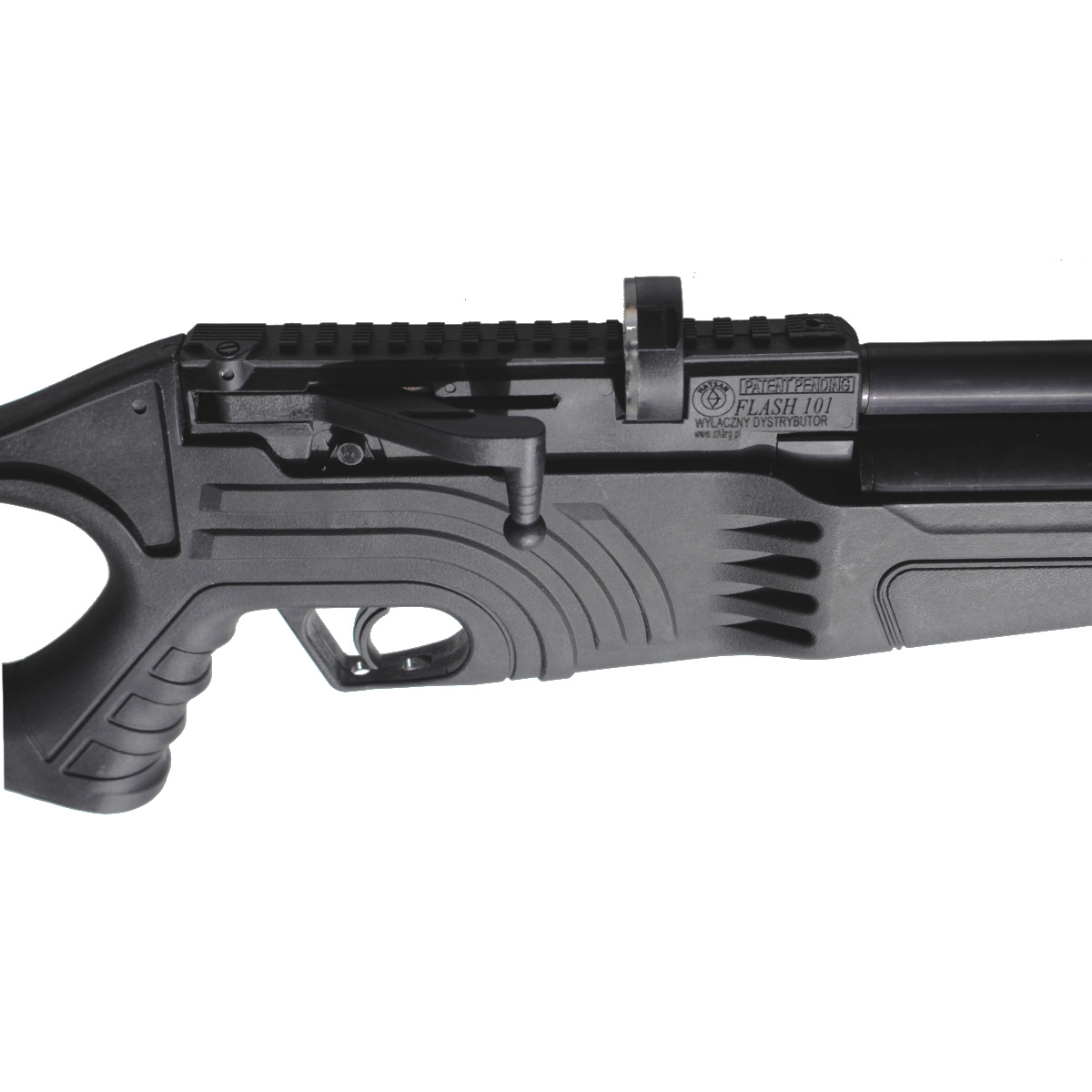 • FLASH 101 modern PCP air rifle from Hatsan at a great price. For those who are looking for a solid multi-shot carbine. Precision threaded 17.7" barrel ending with ½" UNF male threads. 215cc cartridge. Available in cal. 4.5mm, 5.5mm, 6.35mm
