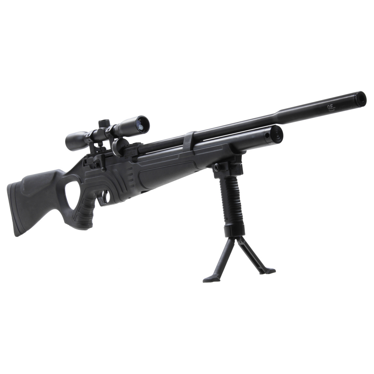 - FLASH 101 QE SET modern PCP air rifle at a great price! Includes PCP pump, Optima 3-9x32 scope with mount, 2 magazines, compensator, rail mount with bipod, carrying case, pack of shotgun shells. Precision 17.7" barrel with integrated QE suppressor..
