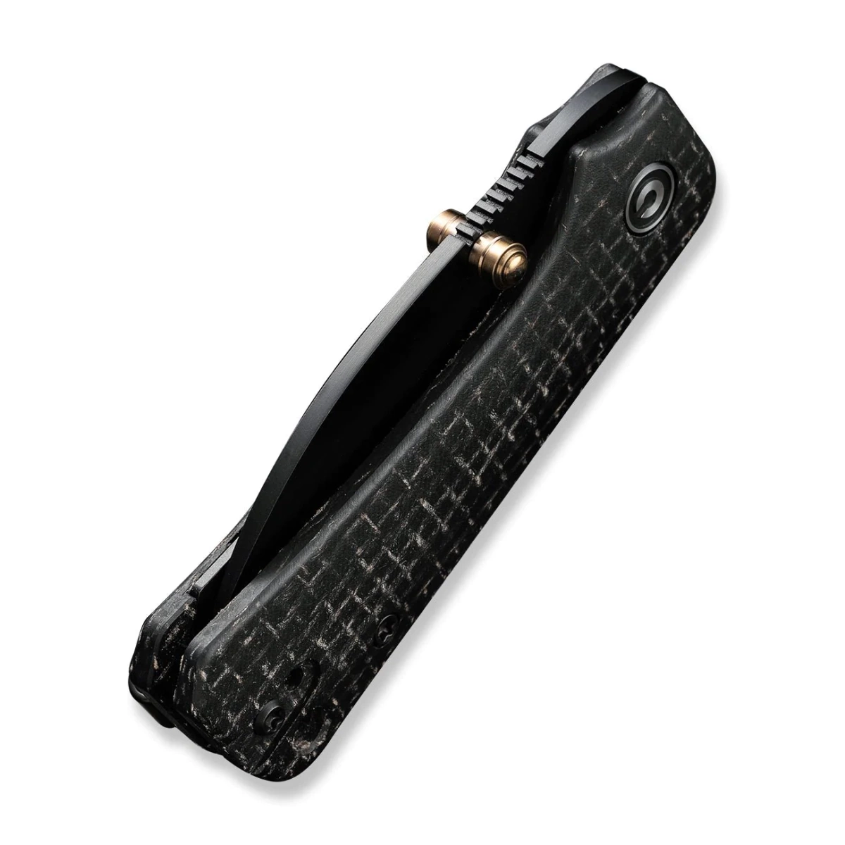 Baby Banter Wharncliffe Black Burlap Micarta, Black is smaller and lighter than the full-size Banter folder E.D.C. designed by American traveler and knifemaker Ben Petersen. It has many of the same thoughtful design elements as the full-size Banter original, but fits in smaller pockets, weighs much less and is much less expensive. The latest edition features a functional Wharncliffe blade.
