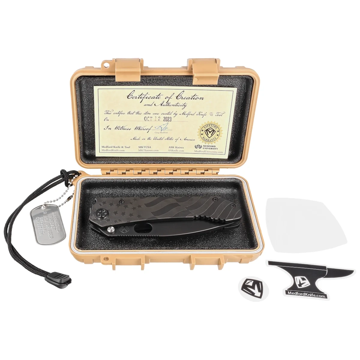 Medford 187 DP Black PVD ''Ghosted Flag'' Titanium, PVD HW, PVD w/Bronze Clip, Black PVD D2 by Greg Medford (MK002DPQ-30PV-TPCP-Q4)