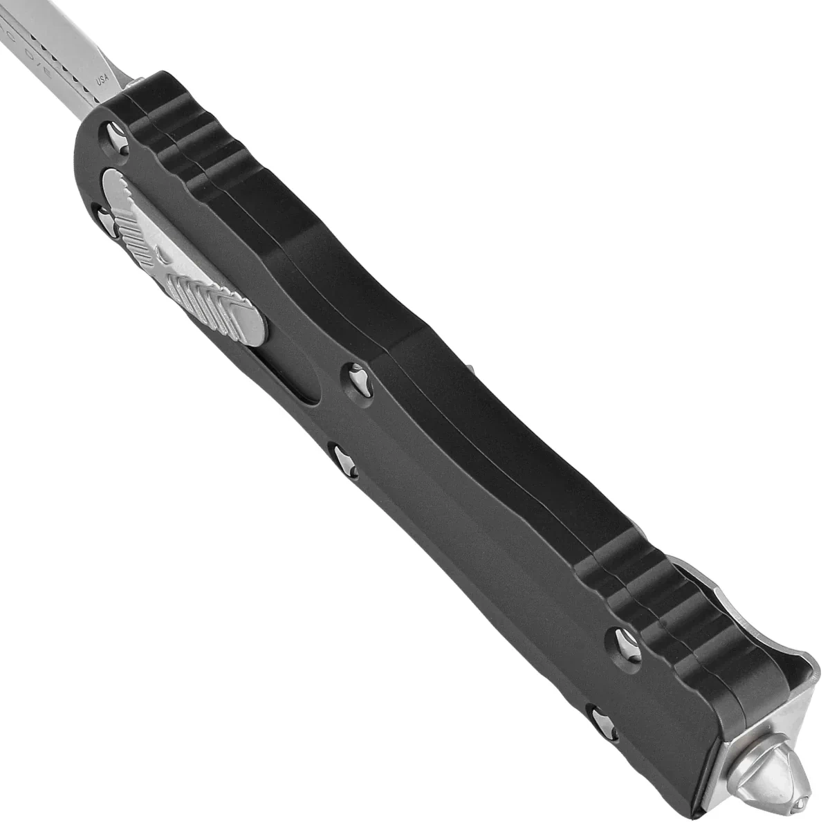 Dirac® - Microtech's first OTF (Out The Front) D/A (Double Action) automatic with the slider slide located in the recess of the handle. Updated ergonomic Handle with curved lines similar to HALO®. This line uses Microtech®'s signature ultra-high-performance features such as patented screws, innovative internal mechanism and glass striker. With an overall length of 7.25 inches, the Dirac® is perfect for an everyday use (EDC) knife.