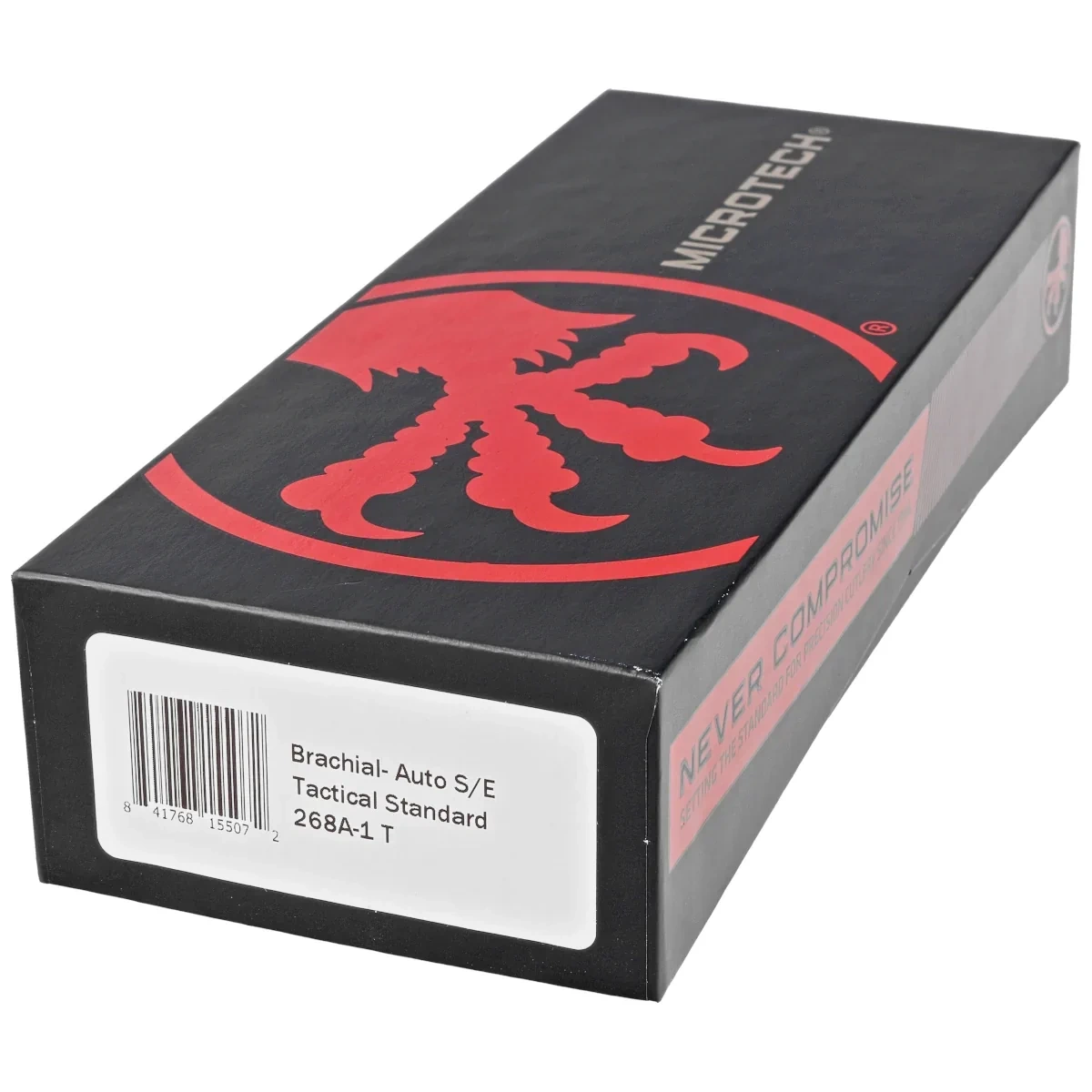 - Brachial Black Aluminum, Black premium automatic folding knife with a perfectly crafted Handle that provides unparalleled comfort during use. The result of a collaboration between Bastien Coves and Anthony Marfione, owner of Microtech Knives.