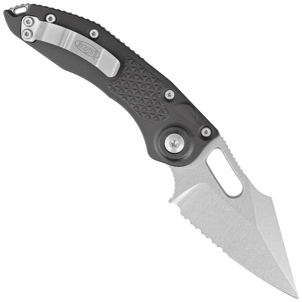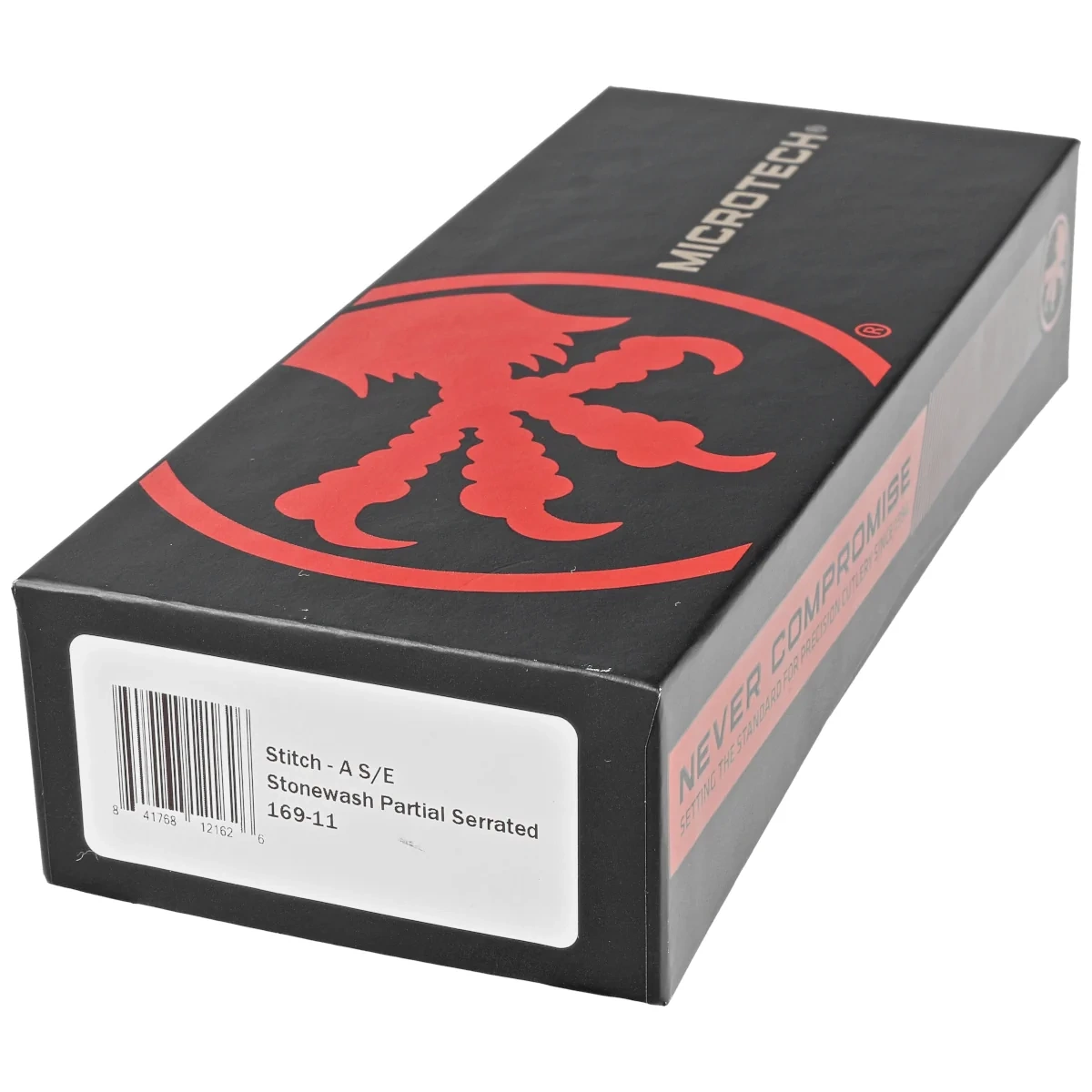 - Stitch-A S/E Black Aluminum, Stonewashed P/S large automatic knife, the result of a collaboration between Sebastijan Berenjie of Borka Blades and Microtech. Wide harpoon-shaped blade, excellent materials and legendary workmanship from Microtech Knives.
