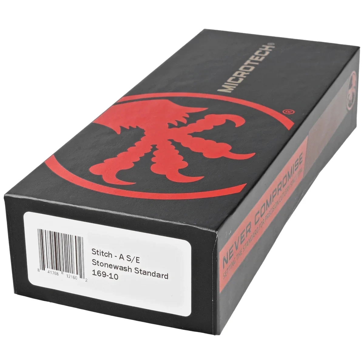 - Stitch S/E Black Aluminum, Stonewash large automatic knife, the result of a collaboration between Sebastijan Berenjie of Borka Blades and Microtech. Wide harpoon-shaped blade, excellent materials and legendary workmanship from Microtech Knives.