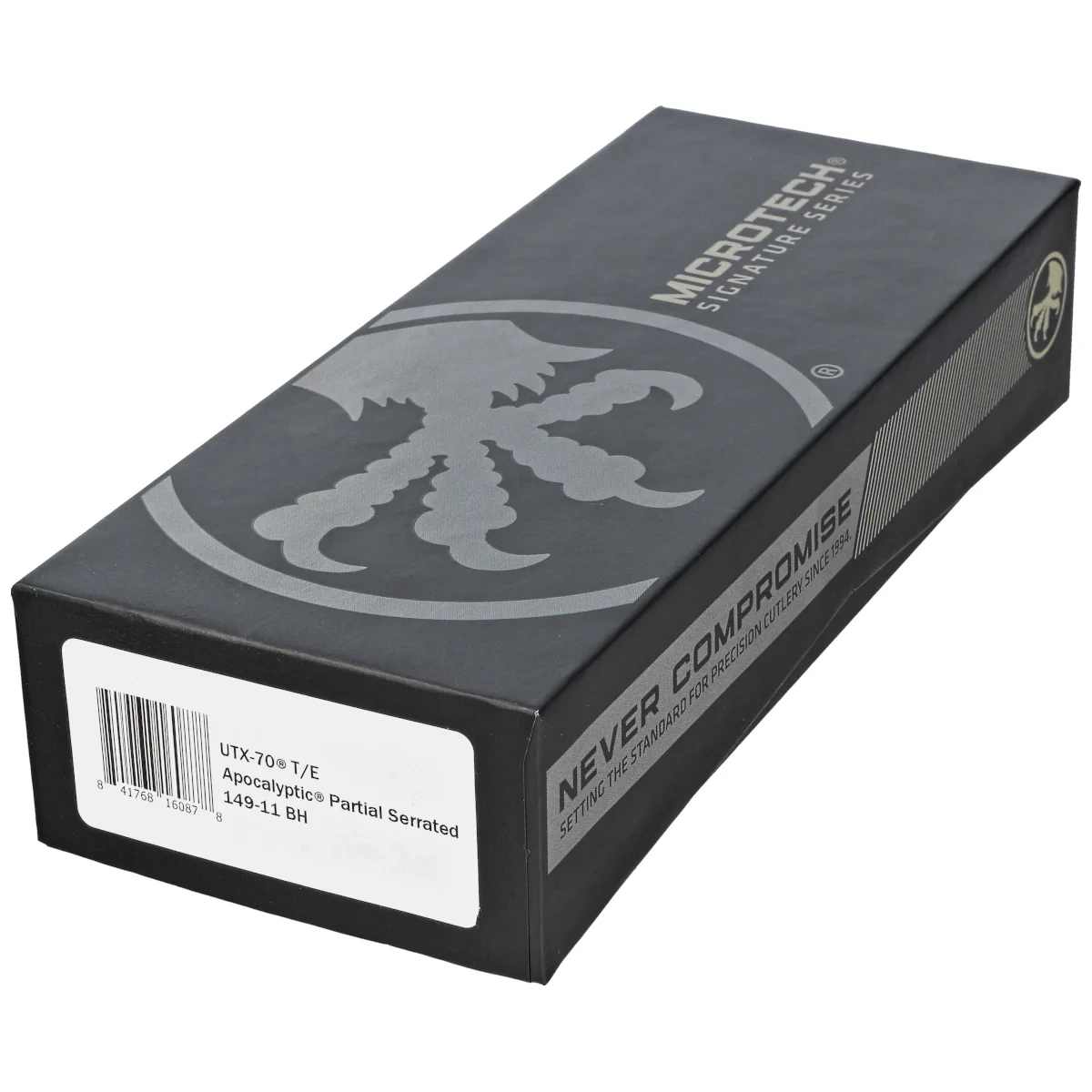 Microtech UTX-70 T/E Bounty Hunter Signature Distressed Green Aluminium, Apocalyptic P/S M390 (149-11BH)