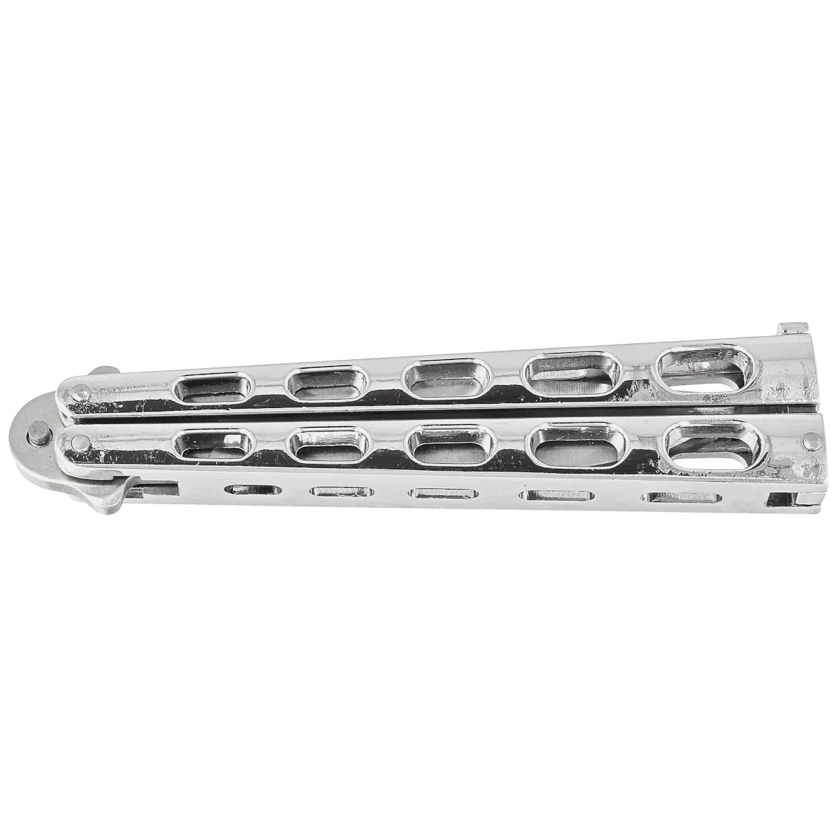 - Practicality: The folding butterfly design makes the Balisong Silver Stainless Steel, Satin easy to carry and store.