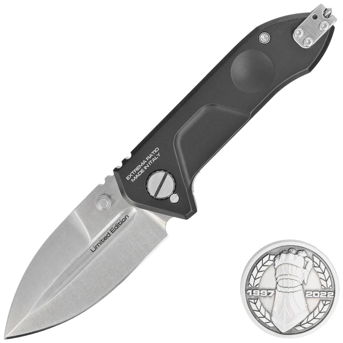 - Frame Rock XXV Anniversarium LE No ???/100 Titanium, Satin limited to 100 pieces edition of compact EDC folding knife from Extrema Ratio. Built with a huge power reserve, it will stand up to the toughest challenges. Comes with a waterproof carrying case!
