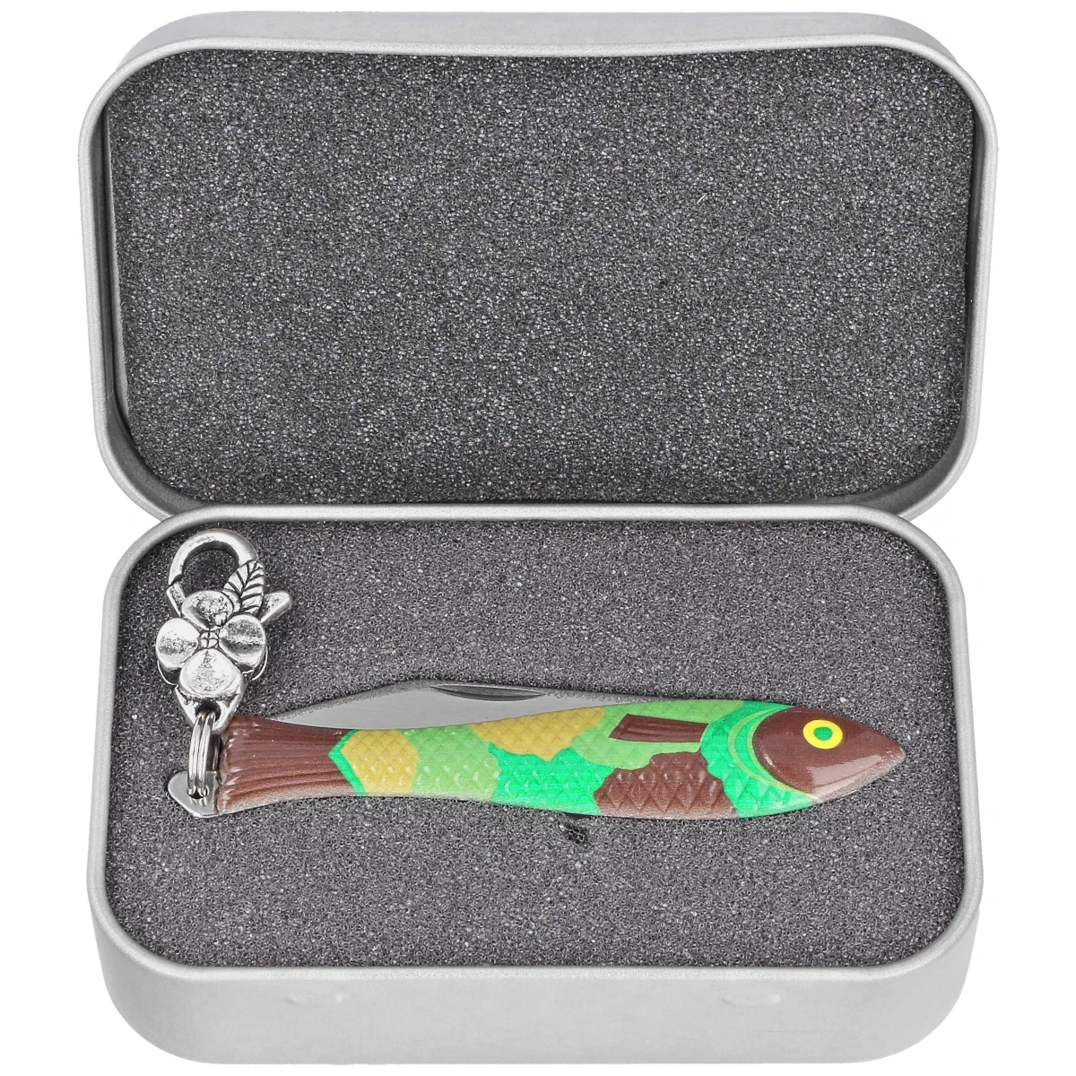 Fishlet, also known as Fishlet or Rybicka, is a unique product that has been produced for more than a century without changing its appearance. It is one of the few such products in the world, a testament to its remarkable durability and enduring charm. This knife, which is Mikov's bestseller, is one of four products from the brand that have been awarded the prestigious title of Regional Product in the Czech Republic. This distinction underscores its unique character and importance to the local community. Fishlet 130 Camouflage, Satin is a model that combines tradition with modernity. Its classic design has been preserved, but at the same time modern technologies have been applied, such as a blade made of AISI 420 stainless steel. The knife's Handle, made of zinc alloy with a colorful print, is not only aesthetically pleasing, but also practical. The knife has an eyelet for attaching it to your keys. Rybka is a knife that combines tradition, functionality and modernity. Its unchanging design and high quality make it a product that deserves the attention of every knife lover.