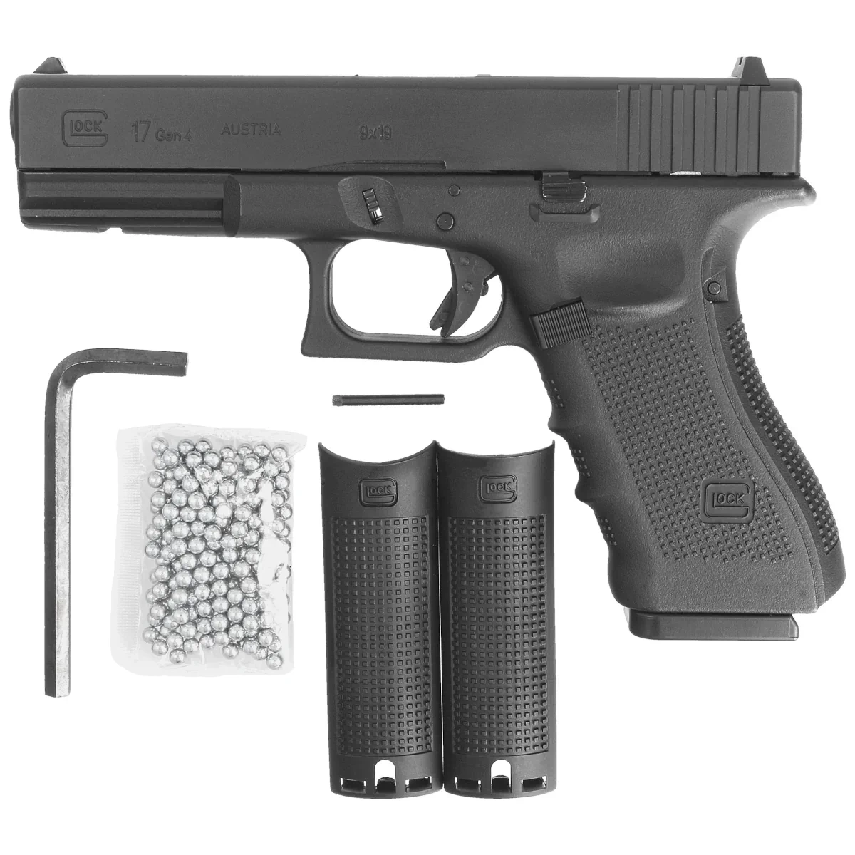 - Glock 17 gen 4 blowback 4.5 mm BB CO2: Air gun with realistic recoil, metal slide and polymer frame, up to 60 shots per CO2 capsule. Perfect for shooting enthusiasts.