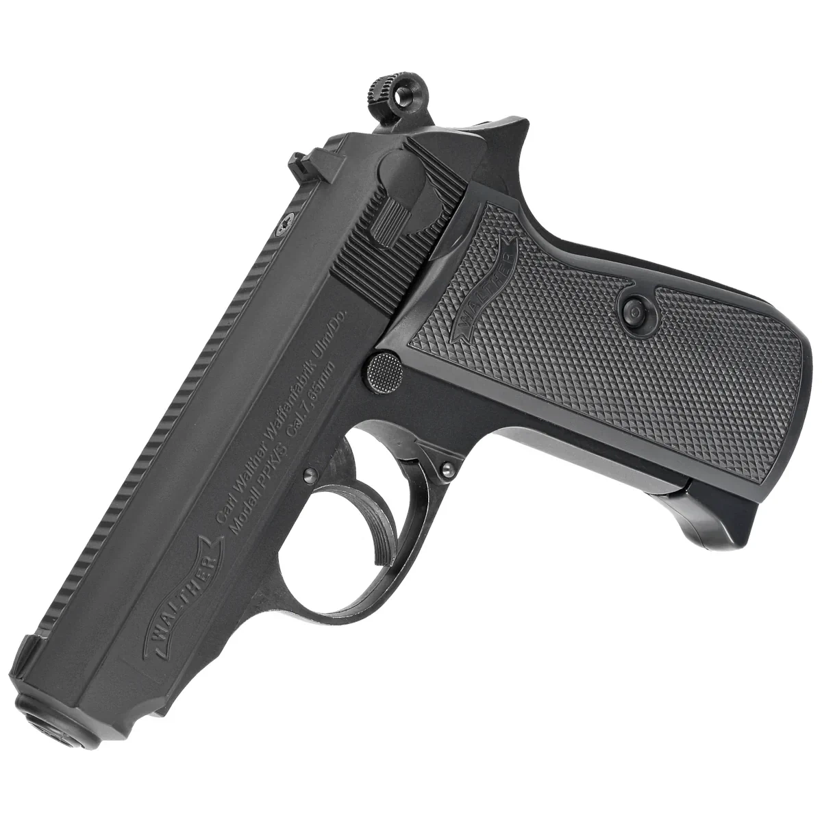 The aesthetics of this model pay homage to classic design, featuring fixed sights ideal for precision shooting practice. Licensed manufacturer markings from Walther add authenticity, a detail appreciated by enthusiasts.