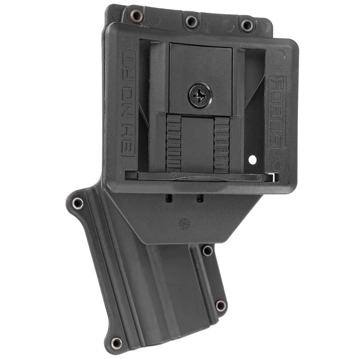 QL RP1 BH ND (Quick Lock Rail Platform 1 Belt Holder New Design) universal single rail platform (RP1) carry platform with 33 mm - 66 mm (police duty) belt width slide-in attachment and QuickLock adapter for quick release / attachment. The holder allows you to comfortably carry any Fobus holsters or pouches equipped with the QuickLock System.