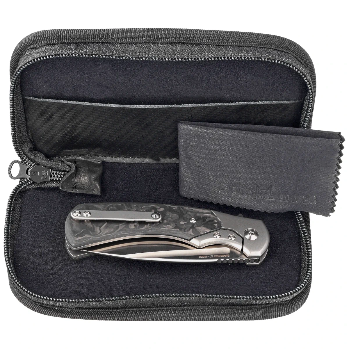 • Fox 40th Anniversary Knife Marble Carbon Fiber, Satin released on the occasion of the company's 40th anniversary reissue of the first folding knife produced by Fox, the 594 Silver Collection model. Made of the best materials using modern technology!
