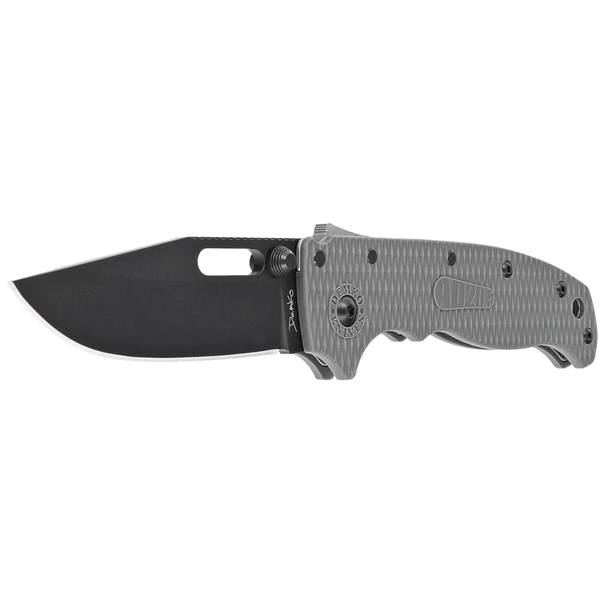 Demko AD20.5 Clip Point Knife Grey Grivory, Black DLC D2 by Andrew Demko (205-D2-CP-DLC)