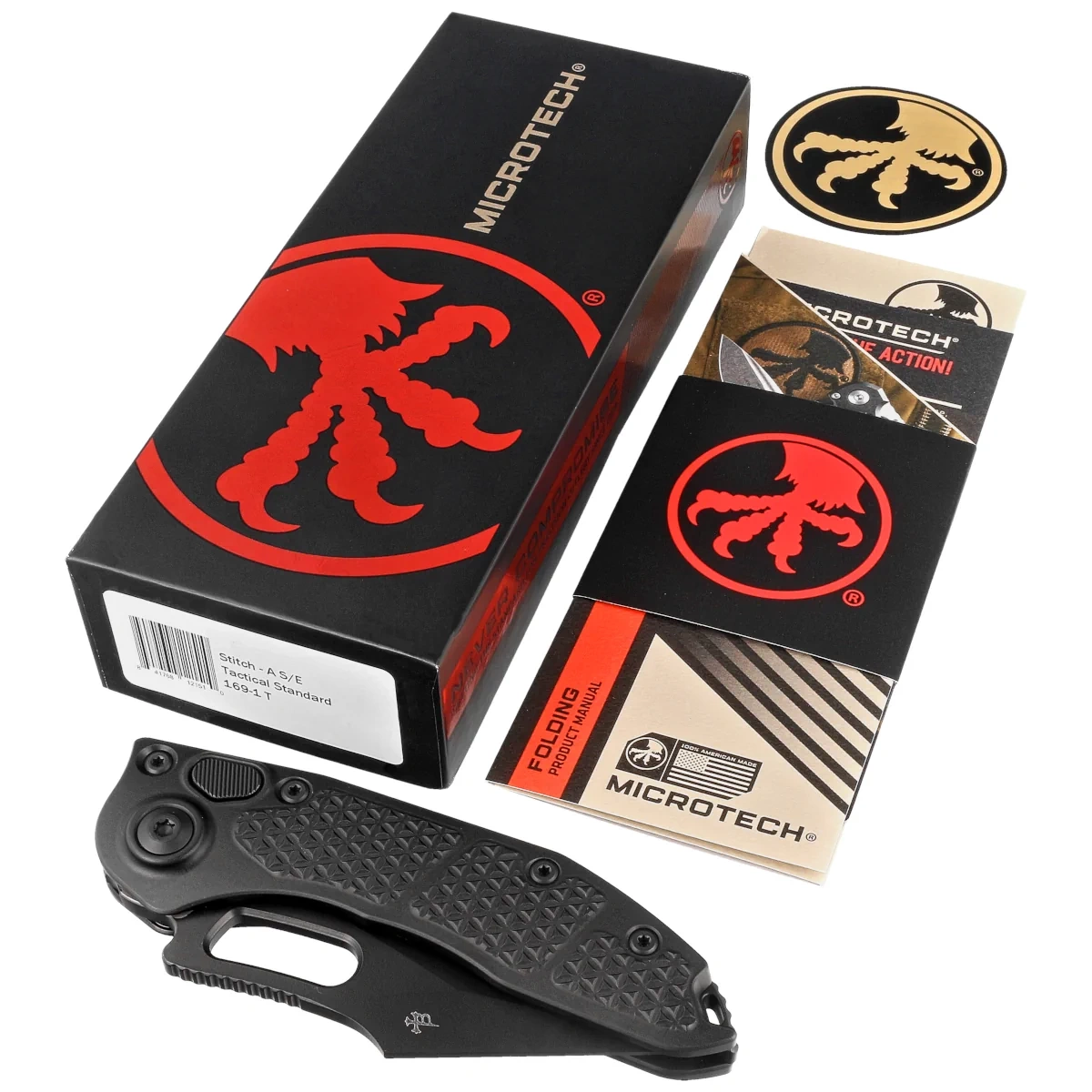 - Stitch S/E Black Aluminum, Tactical automatic version of the popular design by Sebastijan Berenjie of Borka Blades and Microtech. Wide harpoon-shaped blade, superior materials and legendary quality workmanship from Microtech Knives.