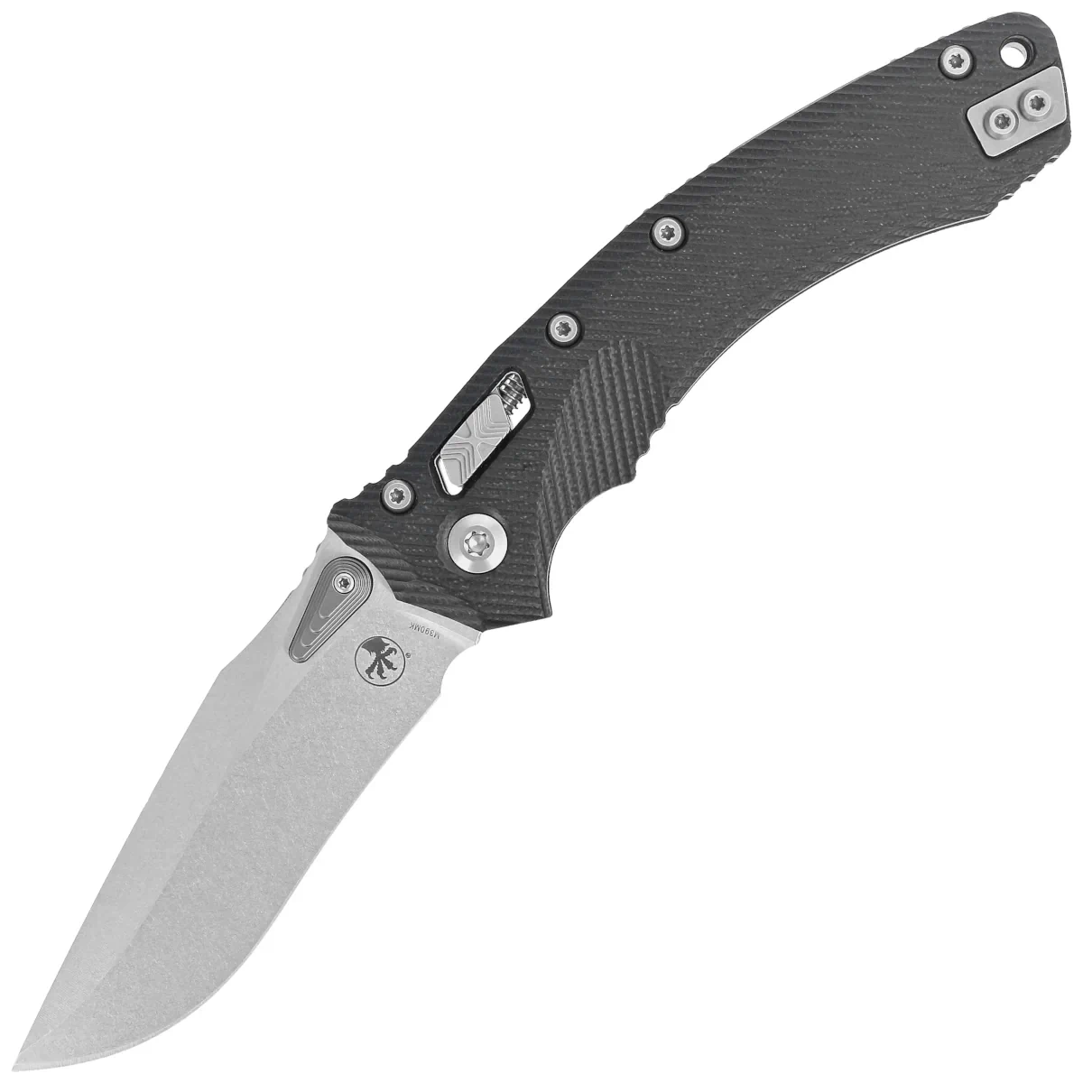 Handle - made of durable G10 composite, covered with milled lines (Fluted) for better grip. Wide locking slide with Microtech's characteristic stepped X structure. Both grips have been screwed together with a solid backspacer. A double-sided (right / left) titanium clip allows you to discreetly carry the knife in tip-up position. Above the clip a lanyard hole, a place for a safety or decorative cord.