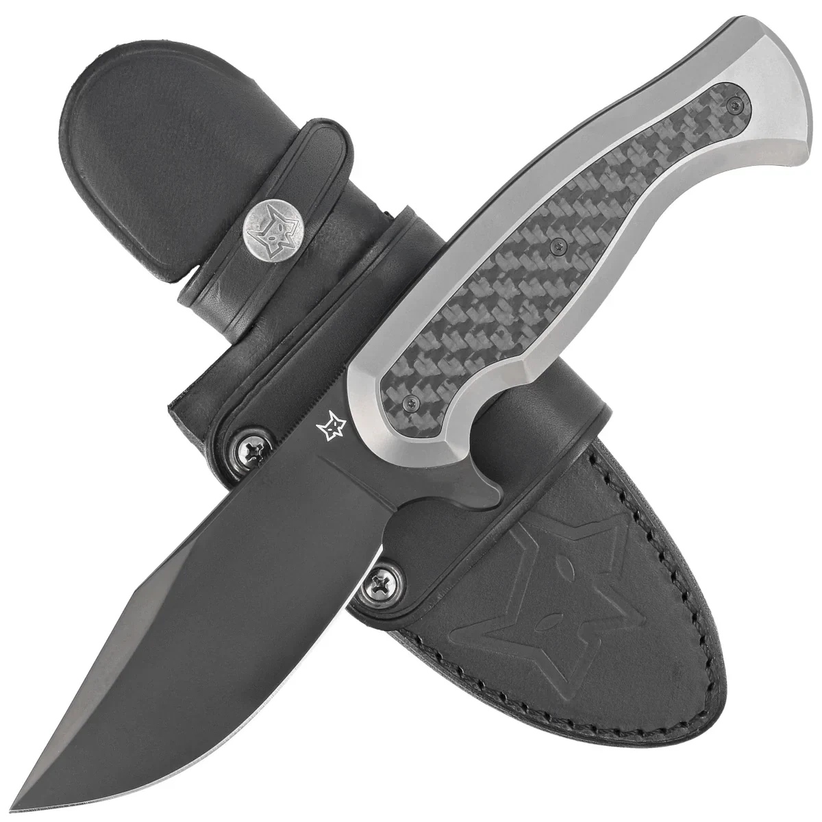 Fox Knife Eastwood Tiger Bead Blasted Titanium/Carbon Fiber, Black PVD Elmax by Gudy Van Poppel (FX-106 TICF)