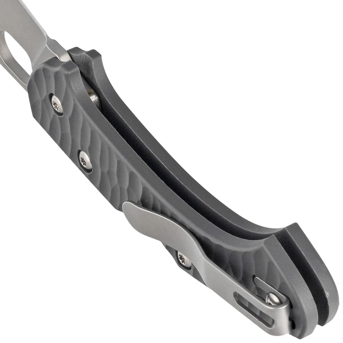 Handle - grips made of FRN (Fiberglass Reinforced Nylon), a lightweight material, insensitive to weather conditions, resistant to chemicals and mechanical damage. The simplicity and sturdiness of the construction give assurance of many years of use. A two-position (right/left) stainless steel clip allows the knife to be carried in tip-up position.