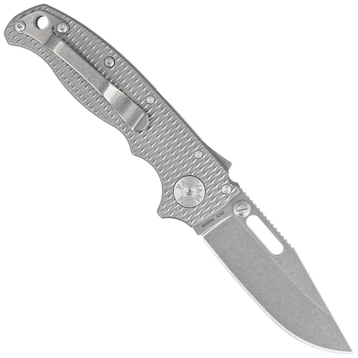 Product name: AD20.5 Clip Point Milled Titanium, Stonewashed CPM 20CV