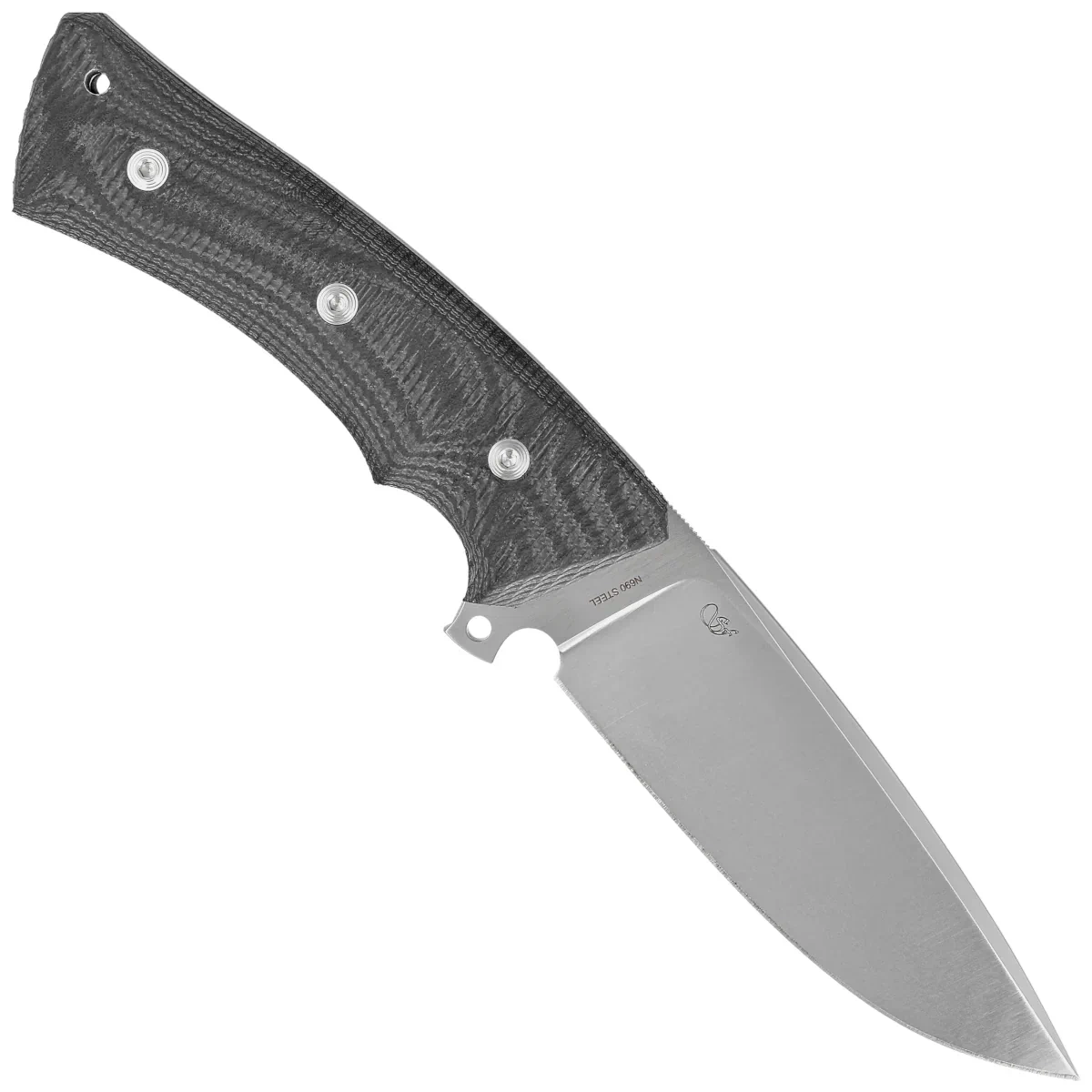 N690Co - a high-carbon stainless knife steel with added cobalt for structural uniformity. One of the best tool steels in the world today. Carbon (C) 1.07% and cobalt (Co) 1.65% make it a very hard steel. It has been vacuum hardened and then freeze hardened to a hardness of 58-59 HRC. At this level of hardness, it provides good cutting edge retention and excellent wear resistance. so the blades stay sharp longer. Due to its high chromium (Cr) level of 17.3%, blades made of this steel will not rust, even when used in damp, wet or salty environments. Manufactured at the Böhler-Uddeholm steelworks in Austria.