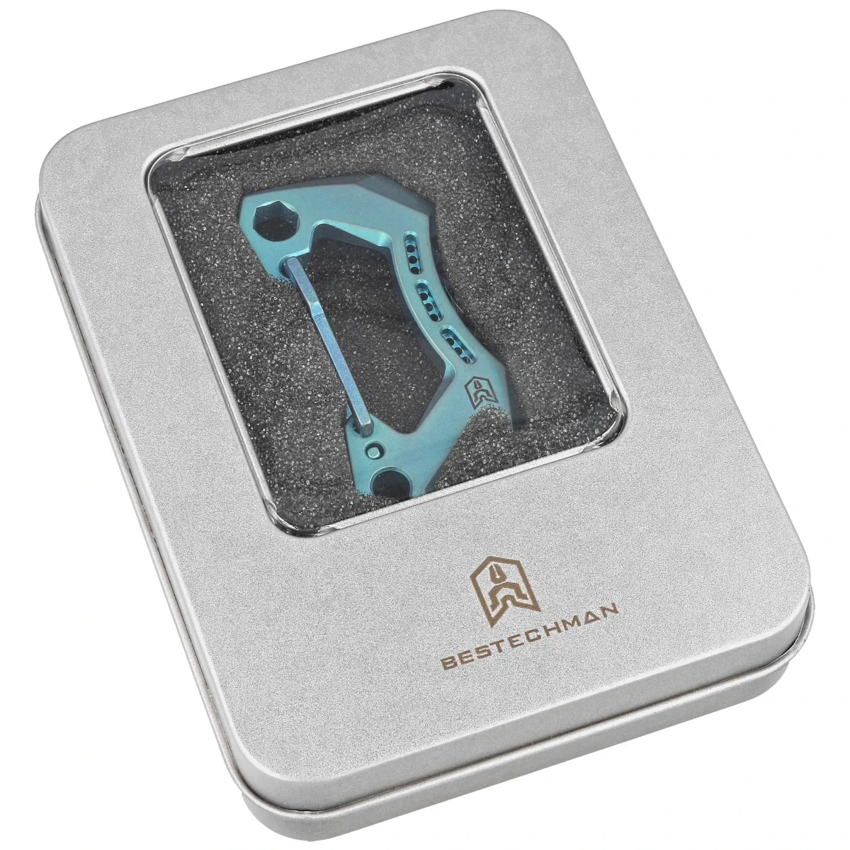 - Bestech Carabiner Blue Titanium made of solid non-magnetic titanium is a versatile carabiner. Includes a bottle opener and a hex key that can be used as a bit holder. A versatile everyday accessory!