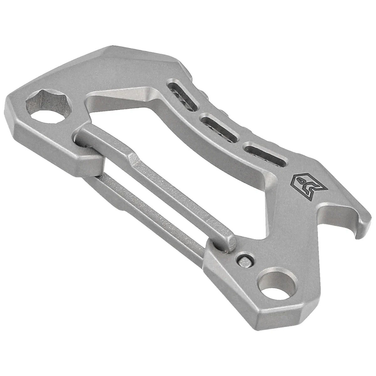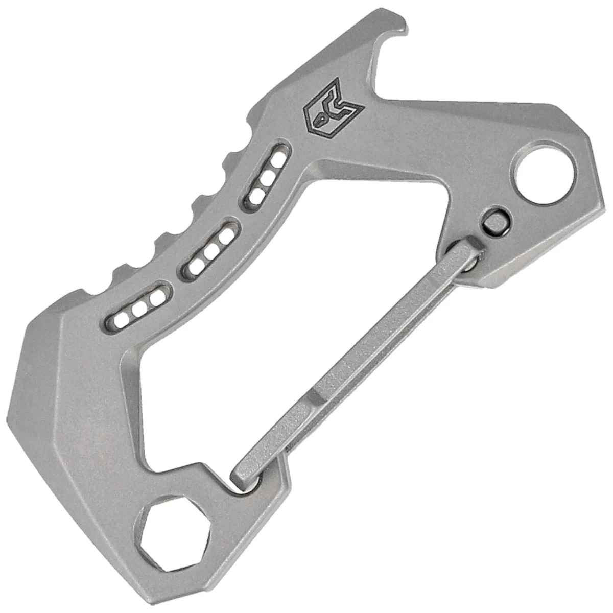In addition to the basic role of the carabiner, additional frequently used useful functions have been thought of, such as a bottle opener or a flat screwdriver with screwdriver/prybar crowbar function . A mini crowbar that can be used for undermining. A very popular tool in the EDC community , as it helps to salvage the tip of a knife that is not designed for this type of task. Also includes a hex wrench that can be used as a bit holder.