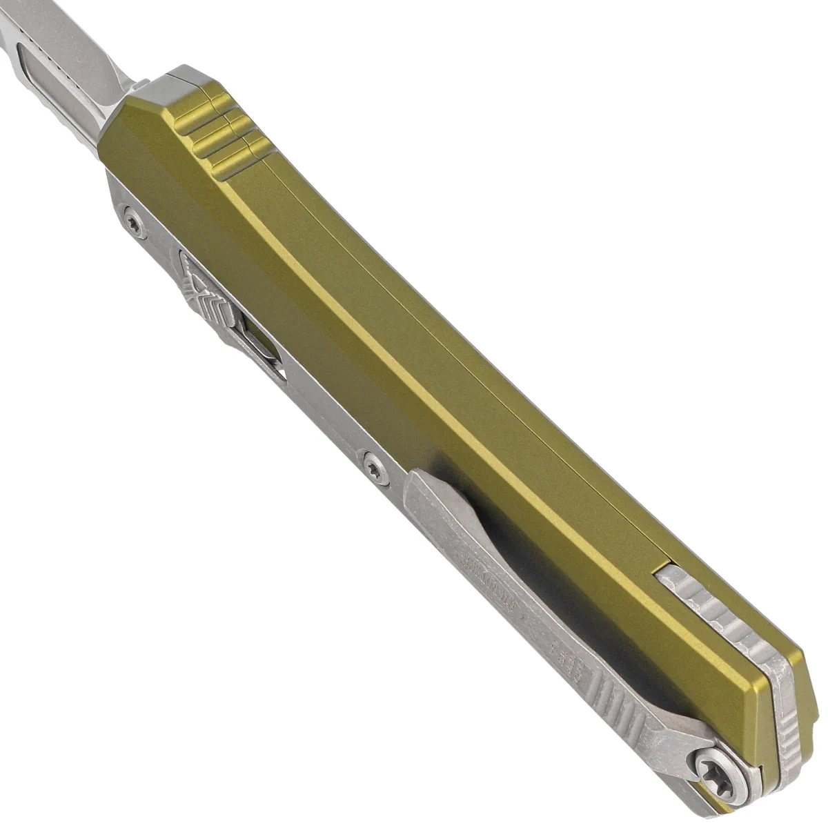 Microtech Glykon Bayonet OD Green Aluminum/Apocalyptic Titanium, Apocalyptic M390 by Tony and Sean Marfione OTF automatic knife (184-10APOD)