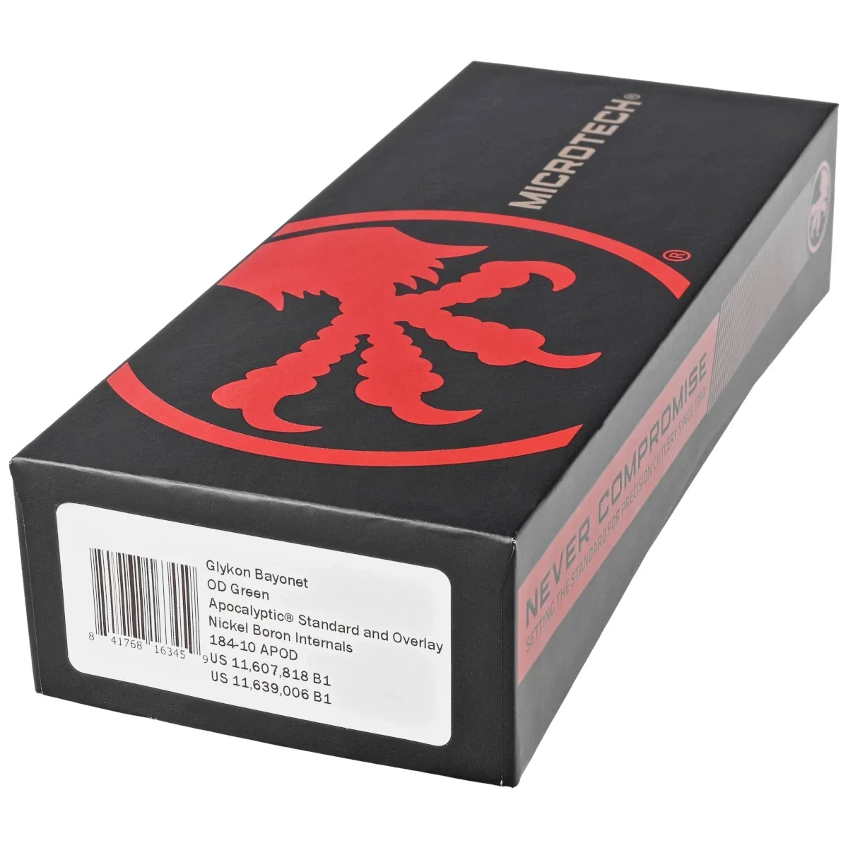 - Glykon Bayonet OD Green Aluminum/Apocalyptic Titanium, Apocalyptic the first OTF automatic with a 3-way push button for ambidextrous operation. Operating in D/A mode equipped with a high-speed blade ejection mechanism. Designed by Tony, Sean Marfione.