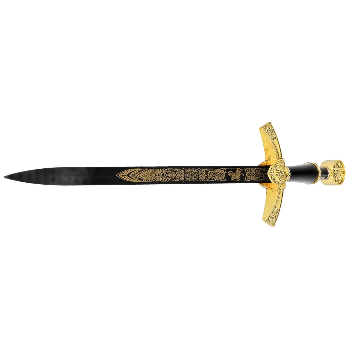 30,34 €Medieval Dagger 15422 is an elegant replica inspired by historical knightly weaponry. Its richly decorated details and striking black-and-gold contrast give it a unique character, making it a perfect choice for collectors and enthusiasts of medieval aesthetics.