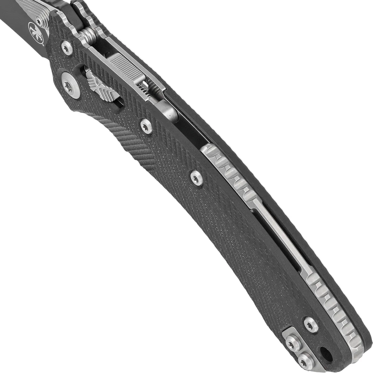 Handle - made of durable G10 composite, covered with milled lines (Fluted) for better grip. Wide locking slide with Microtech's characteristic stepped X structure. Both grips have been screwed together with a solid backspacer. A double-sided (right / left) titanium clip allows you to discreetly carry the knife in tip-up position. Above the clip a lanyard hole, a place for a safety or decorative cord.