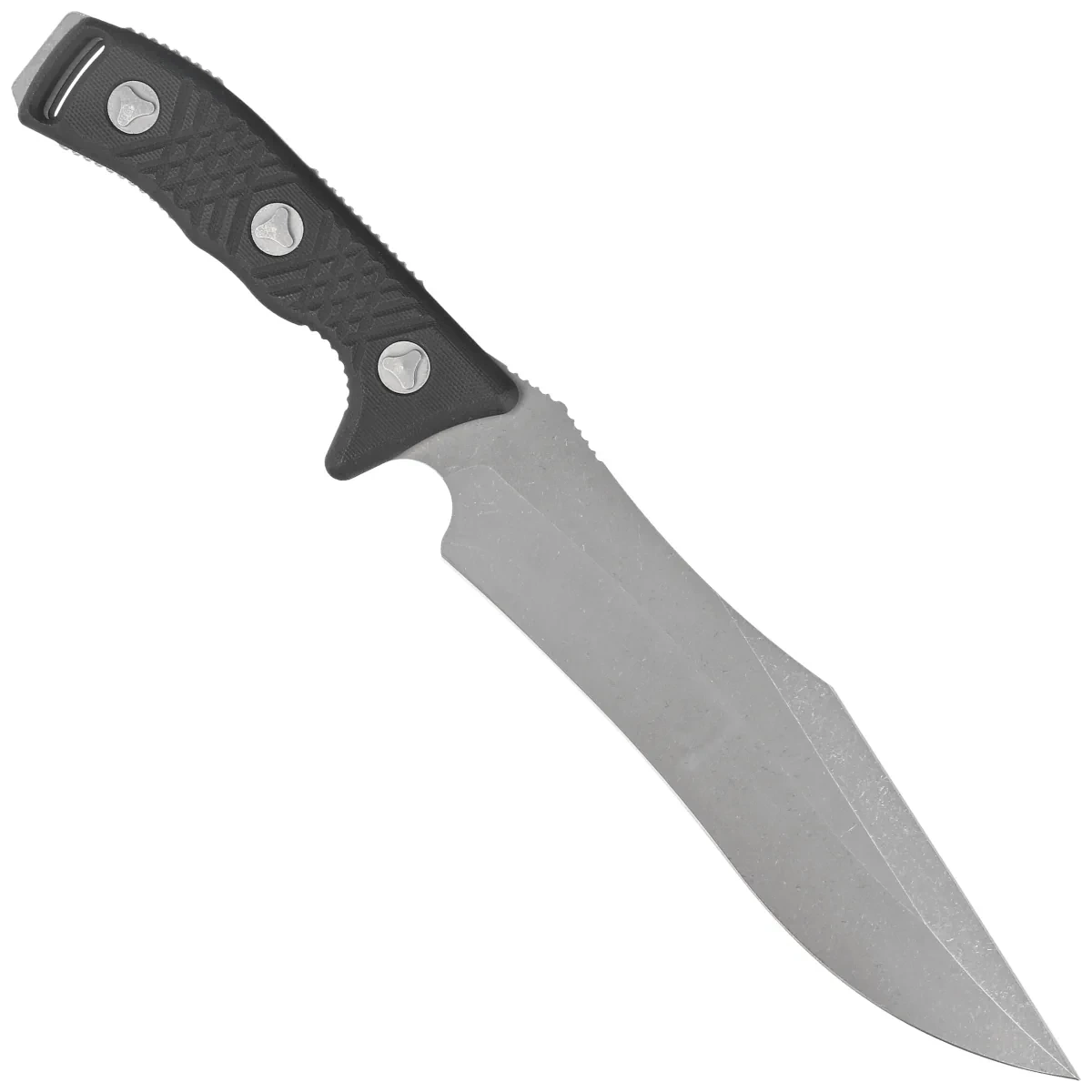The Arbiter S/E Black G10, Apocalyptic is the largest fixed blade knife offered by Microtech, a company known for producing high quality cutting tools. This impressive knife features a powerful Bowie-type blade, and is made from excellent M390MK steel, which is the result of a collaboration between two renowned companies - Microtech and Böhler. This steel is known for its exceptional strength and long sharpness retention, making this knife unafraid of any challenge. Handle is made of G10 composite, durable and weather-resistant. Ergonomically profiled, it provides comfort even for long use. Kydex sheath that allows trouting to M.O.L.L.E. systems. A functional, but also attractive knife that combines durability, ergonomics and style. A tool that is sure to satisfy even the most demanding users.