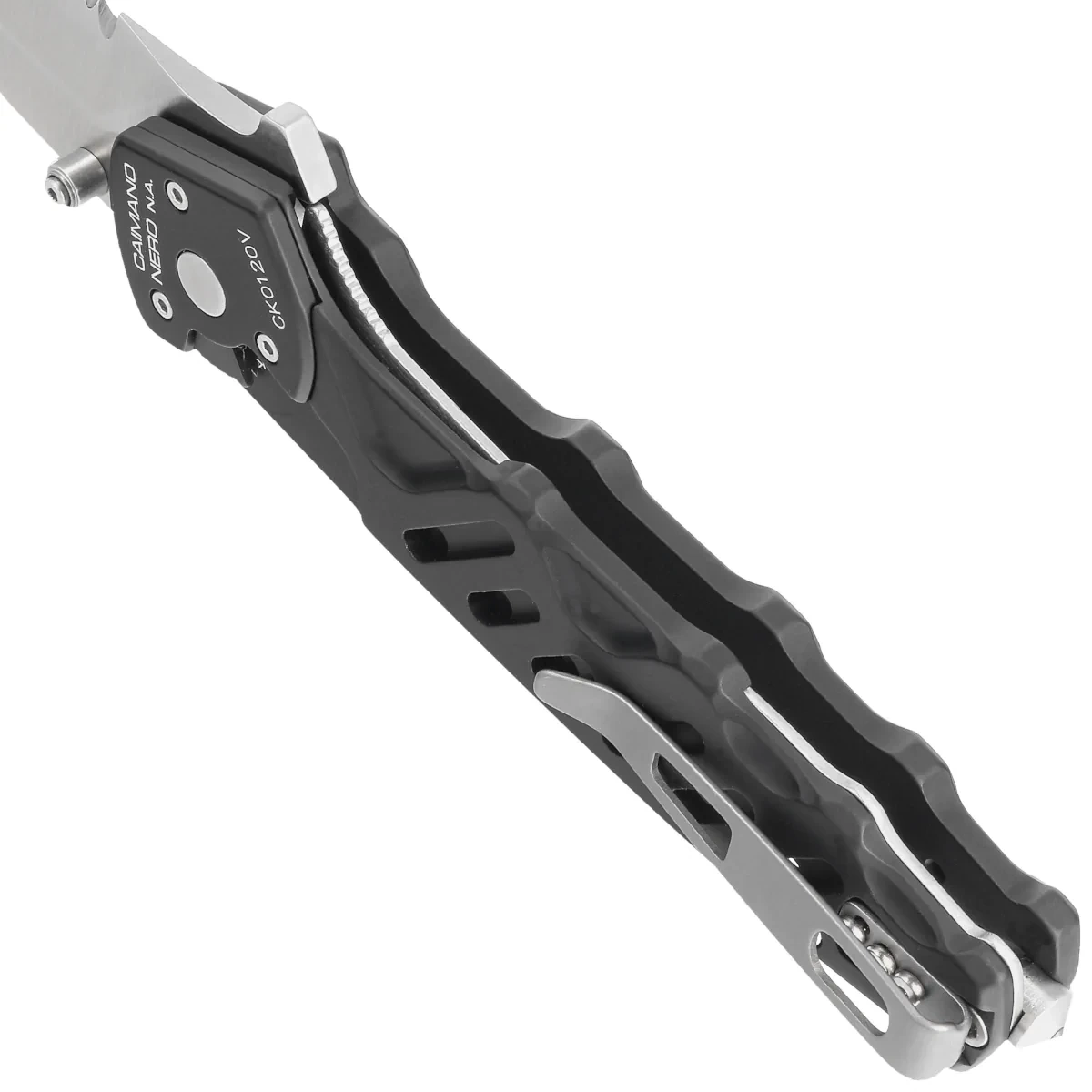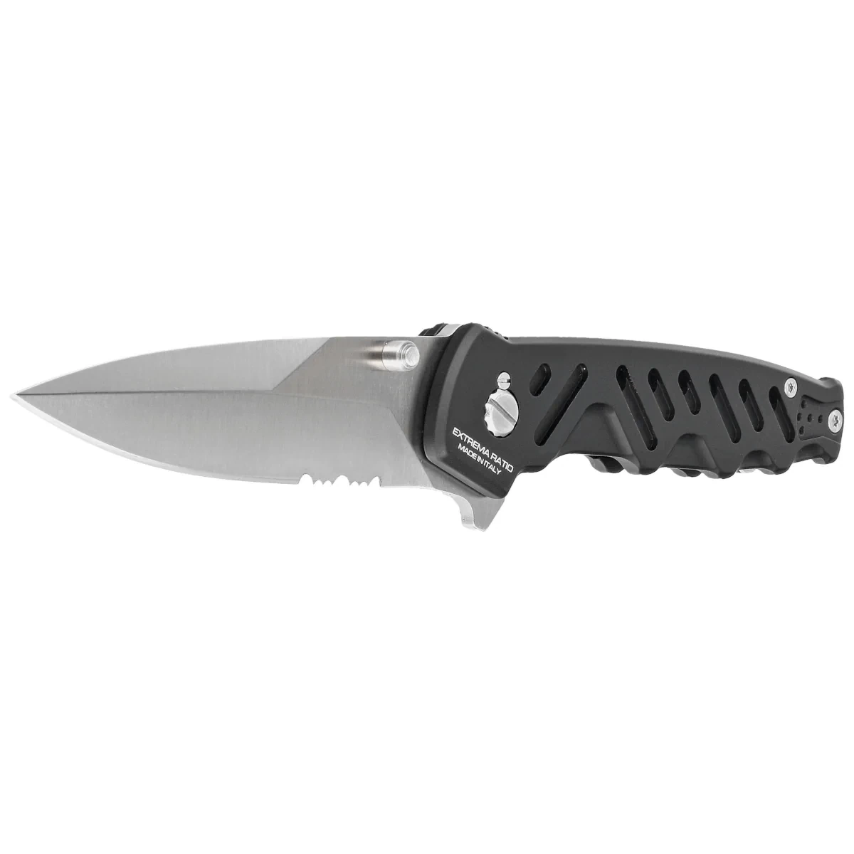 • Caimano Nero N.A. Black Aluminum, Satin, large tactical folding knife, Its name refers to the Caimani Neri del Piave unit. Designed by Extrema Ratio for G.O.I., Gruppo Operativo Incursori, aluminum Handle, proven Böhler N690 steel.