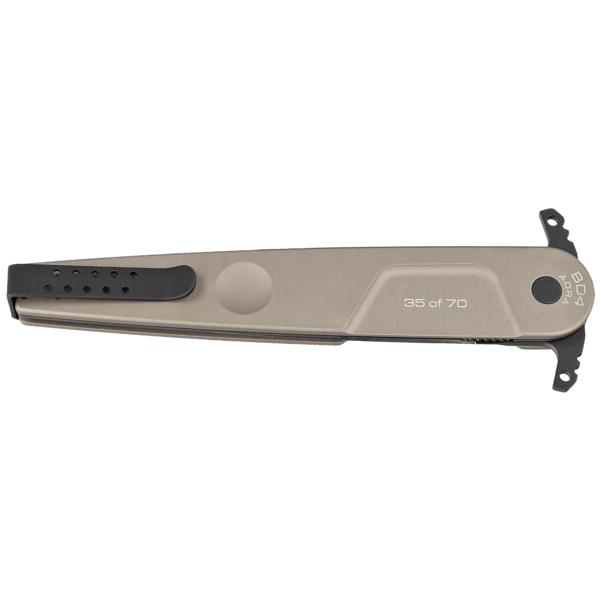 BD4 Adra Contractor LE No 35/70 Tactical Mud Aluminum, Black Limited Edition. Limited to 70 pieces, a limited edition of a large folding tactical knife issued to celebrate the 20th anniversary of the Italian Air Force's special unit, the 17 Stormo Incursori. The knife, numbered 35, its name refers to and pays tribute to the heroic Arditi Distruttori unit of the Regia Aeronautica (ADRA), operating in North Africa during World War II, which won two silver medals for valor on the battlefield.
