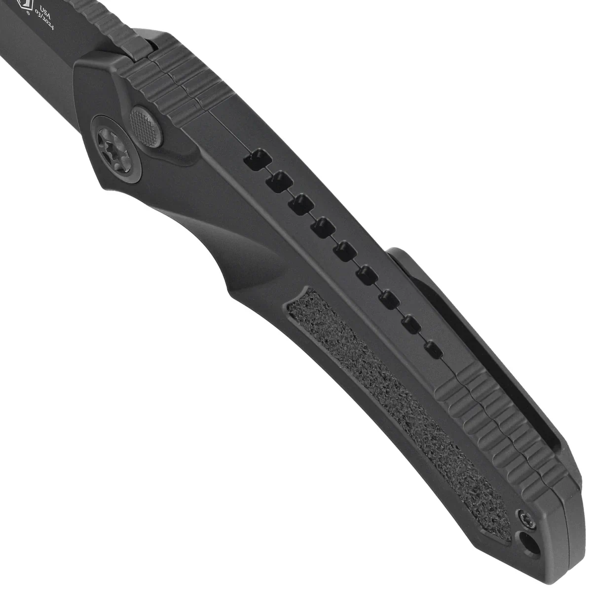 Pariah Auto Black Aluminum, Black Cerakote is a unique automatic knife from the Pariah series, which certainly stands out from other knives. The ergonomic aluminum Handle with perfectly matched sandpaper-textured plastic inlays provides a comfortable and secure grip. Blades are made from what is now considered the best CPM MagnaCut knife steel, with a black Cerakote™ coating. Designed for on-the-job performance, it combines elegance and functionality. Sophisticated details make it not only a practical tool, but also a unique accessory that deserves a place in any knife collection. Precision craftsmanship quality materials make it not only a practical tool, but also a work of functional art. Whether you are a knife collector or looking for a reliable tool for everyday use, the Pariah Auto is a knife that is sure to exceed your expectations, a unique experience that redefines what an automatic knife can be.