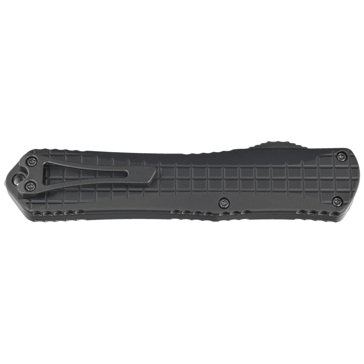 • Manticore X D/E Black Frag Aluminum, Black/Satin full-size OTF automatic knife from the Manticore series. Operating in D/A mode, it features a hell of a fast blade extension mechanism. Designed by Tony Marfione Jr. owner of Heretic Knives