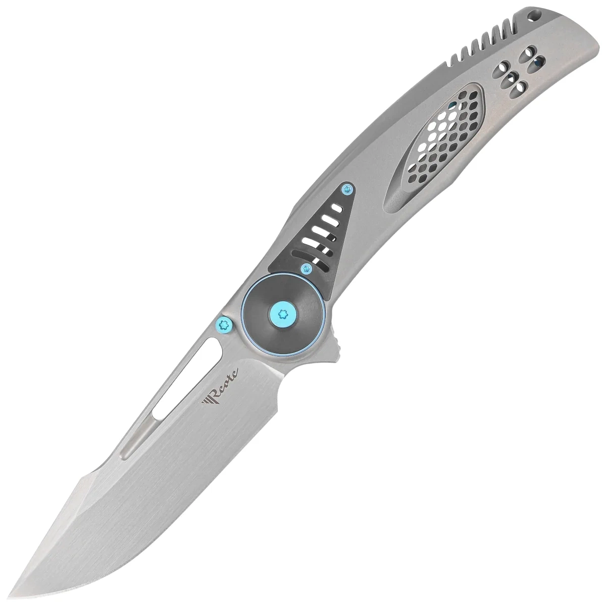Reate GTR Knife Bead Blasted Titanium/Zirconium Inlay, HW Ti-Blue Clip, Hand Satin M390